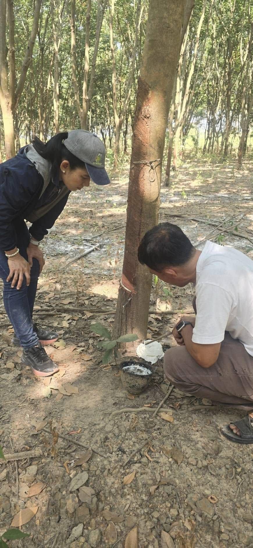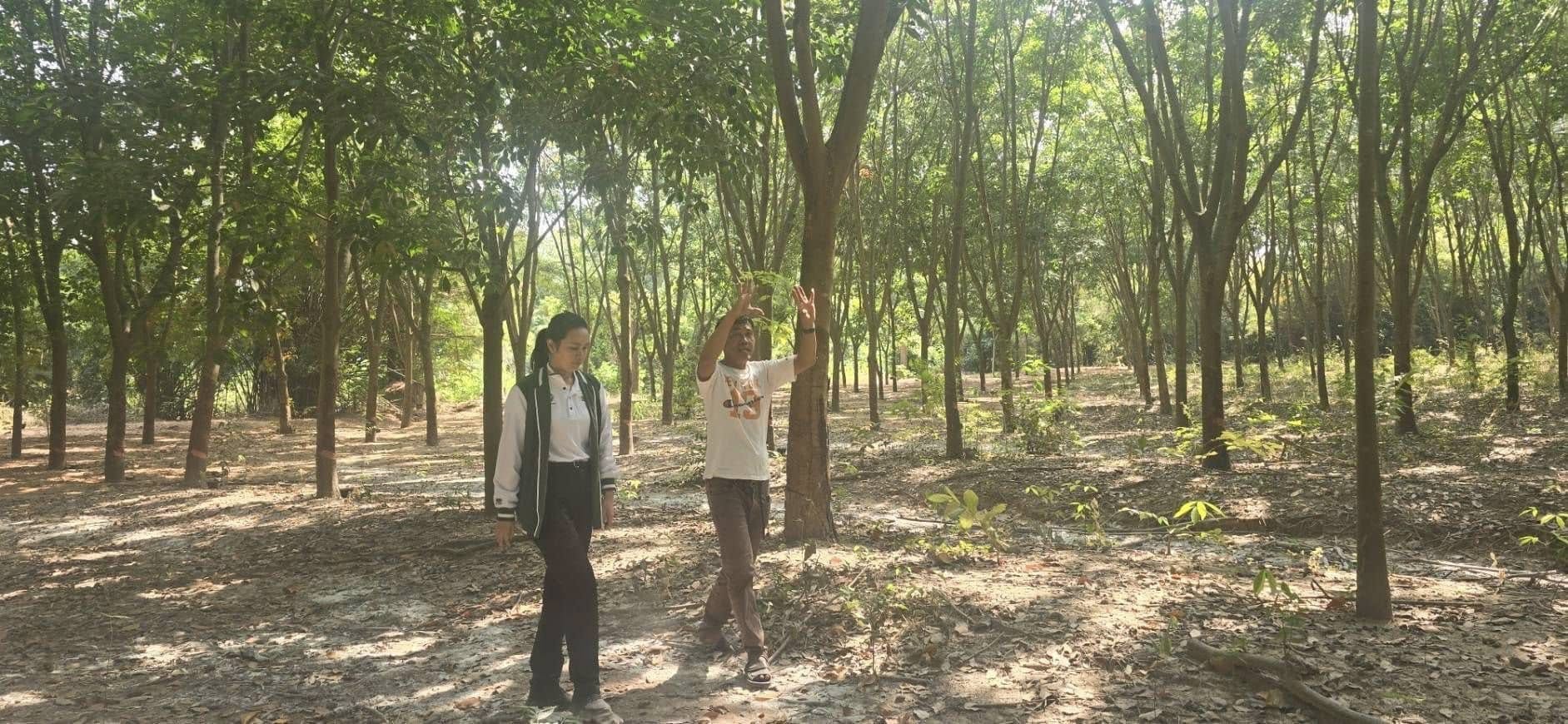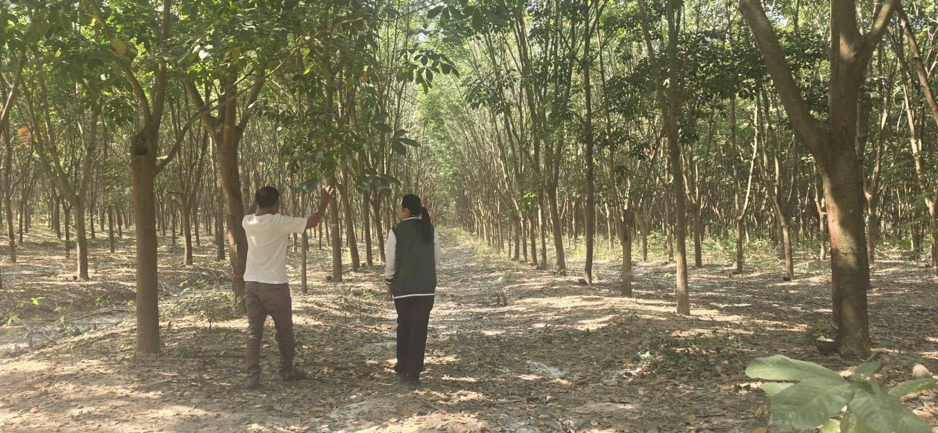 คุณศิริลักษณ์ เจนการวณิช ผู้ชำนาญการอาวุโส สำนักบริหารความยั่งยืนฯ พร้อมด้วยคุณศิยาพร โรจน์วิสุทธินันท์ ผู้ชำนาญการบริหารข้อมูลธุรกิจยางพาราครบวงจร บ.เจริญโภคภัณฑ์การเกษตร จำกัด ธุรกิจพืชครบวงจร ข้าว ขนส่งและบริการ ร่วมสำรวจพื้นที่สวนยางแปลงใหญ่ พื้นที่ 2,182 โร่ เพื่อเตรียมความพร้อมในการจัดทำโครงการลดก๊าซเรือนกระจกภาคสมัครใจตามมาตรฐานของประเทศไทย (Thailand Voluntary Emission Reduction Program) หรือ T-VER (ภาคเกษตร) เพื่อสำรวจความสมบูรณ์ของต้นยางในชั้นภูมิต่างๆ รวมทั้งการบริหารจัดการสวนยางแต่ละพื้นที่ ก่อนดำเนินโครงการฯ
