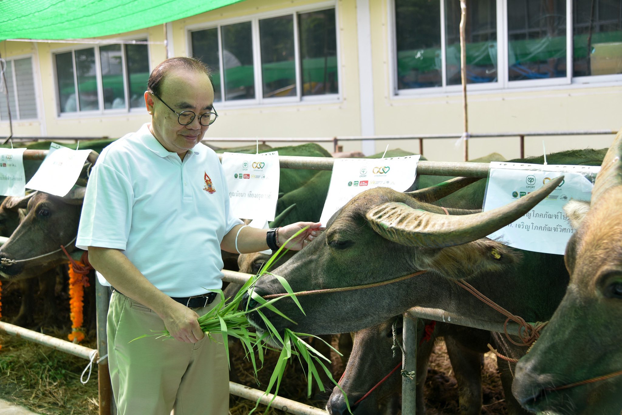 คุณประสิทธิ์ ดำรงชิตานนท์ รองประธานกรรมการ ธุรกิจพืชครบวงจร ข้าว ขนส่งและบริการ (CPCRT) เครือเจริญโภคภัณฑ์ พร้อมด้วยผู้บริหารและพนักงาน ร่วมสมทบทุนทรัพย์ ไถ่ชีวิตโค-กระบือ รวมจำนวน ๒๒ตัว แบ่งเป็น โค ๑๖ตัว กระบือ ๖ตัว รวมมูลค่า ๕๙๕,๓๑๙.๖๙ บาท เพื่อส่งมอบให้กับธนาคารโค-กระบือ ตามพระราชดำริฯ