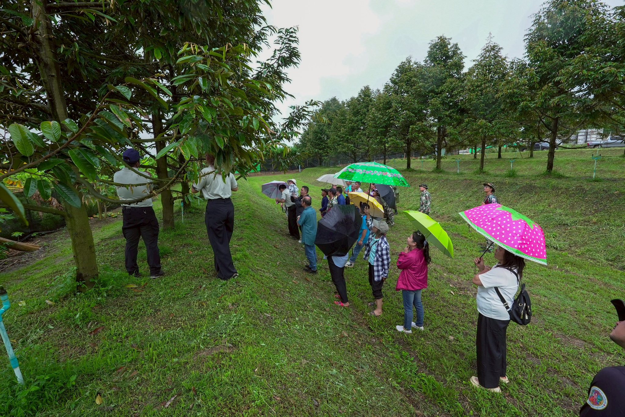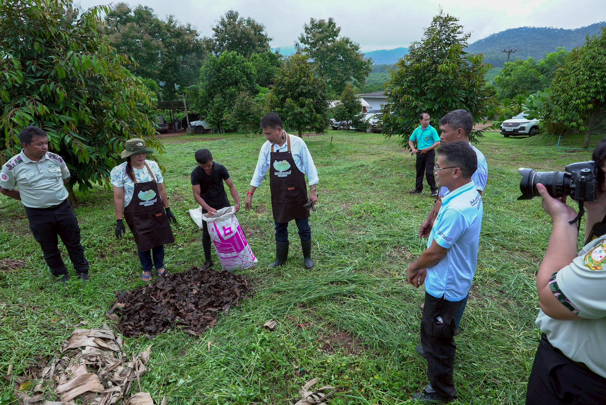 ดร.สดุดี สุพรรณไพ ผู้บริหารโครงการธรรมชาติปลอดภัย เครือเจริญโภคภัณฑ์ พร้อมด้วยคุณอานนท์ กุลนิล หัวหน้าอุทยานแห่งชาติศรีลานนา นำชาวบ้านจากบ้านแม่สายป่าเมี่ยงกว่า 20 ราย ศึกษาดูงานการปลูกทุเรียนคุณภาพในพื้นที่ต้นแบบ จำนวน 2 แห่งในจังหวัดเชียงใหม่ สวนแรกคือ สวนด็อกเตอร์ ของ ดร.ชนะ รัตนภักดี ต.น้ำแพร่ อ.พร้าว จ.เชียงใหม่ ชาวบ้านจะได้เรียนรู้กระบวนการผลิตการดูแล การคัดเลือกกล้าพันธุ์ทุเรียน และการทำปุ๋ยหมักเพื่อใช้ปรับปรุงต้นทุเรียน นอกจากนี้ยังได้รับการถ่ายทอดความรู้การทำสวนทุเรียนจากประสบการณ์ตรงของเจ้าของสวน