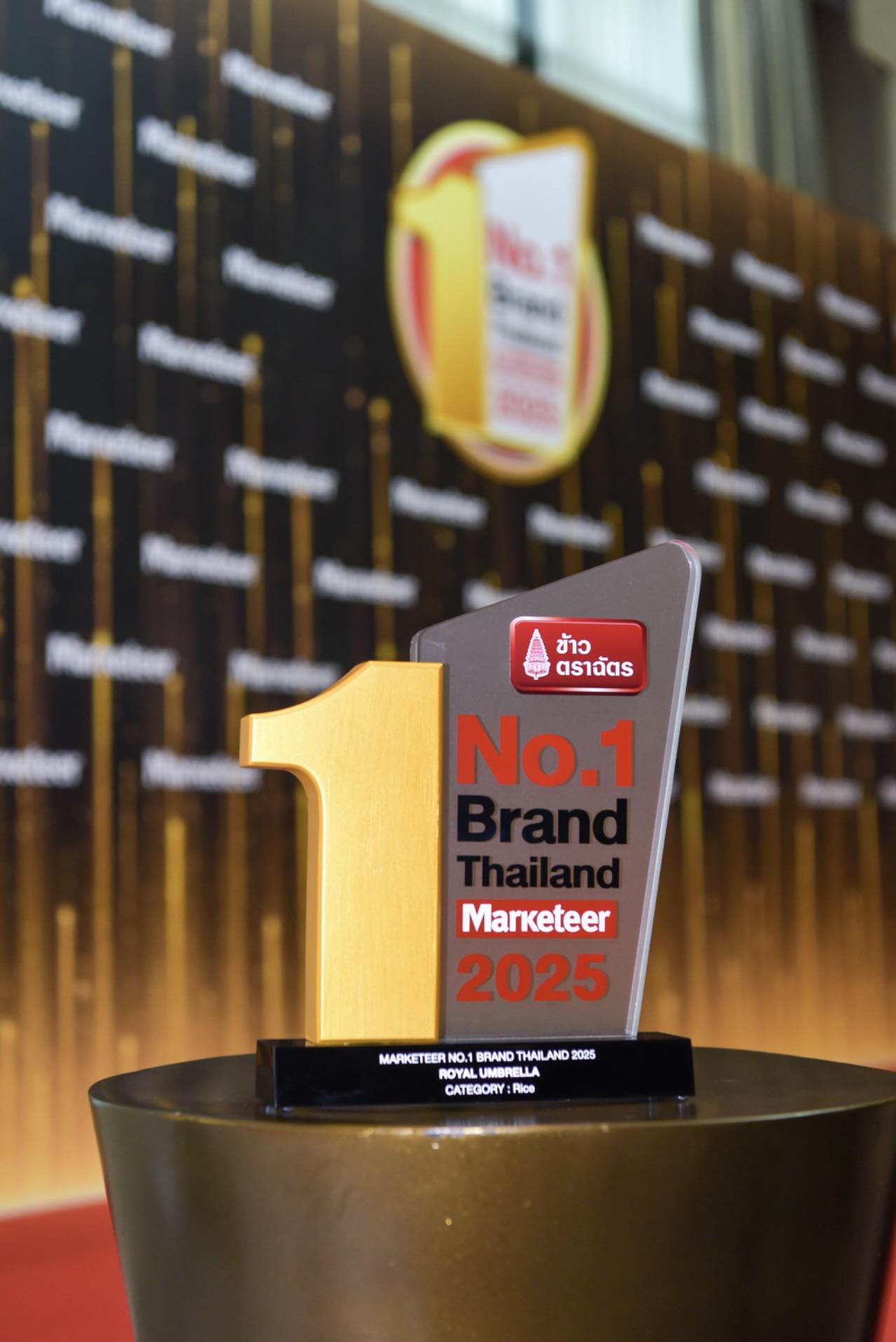 คุณยงยุทธ พฤกษ์มหาดำรง รองกรรมการผู้จัดการบริหาร ข้าวตราฉัตร ขึ้นรับรางวัลข้าวยอดนิยมอันดับ 1 ในใจผู้บริโภคต่อเนื่องเป็นปีที่ 14 จากรางวัล “Marketeer No.1 Brand Thailand 2025 ” หรือรางวัลแบรนด์ยอดนิยมอันดับ 1 ในใจผู้บริโภคทั่วประเทศไทย ในหมวดธุรกิจข้าวสารบรรจุถุง