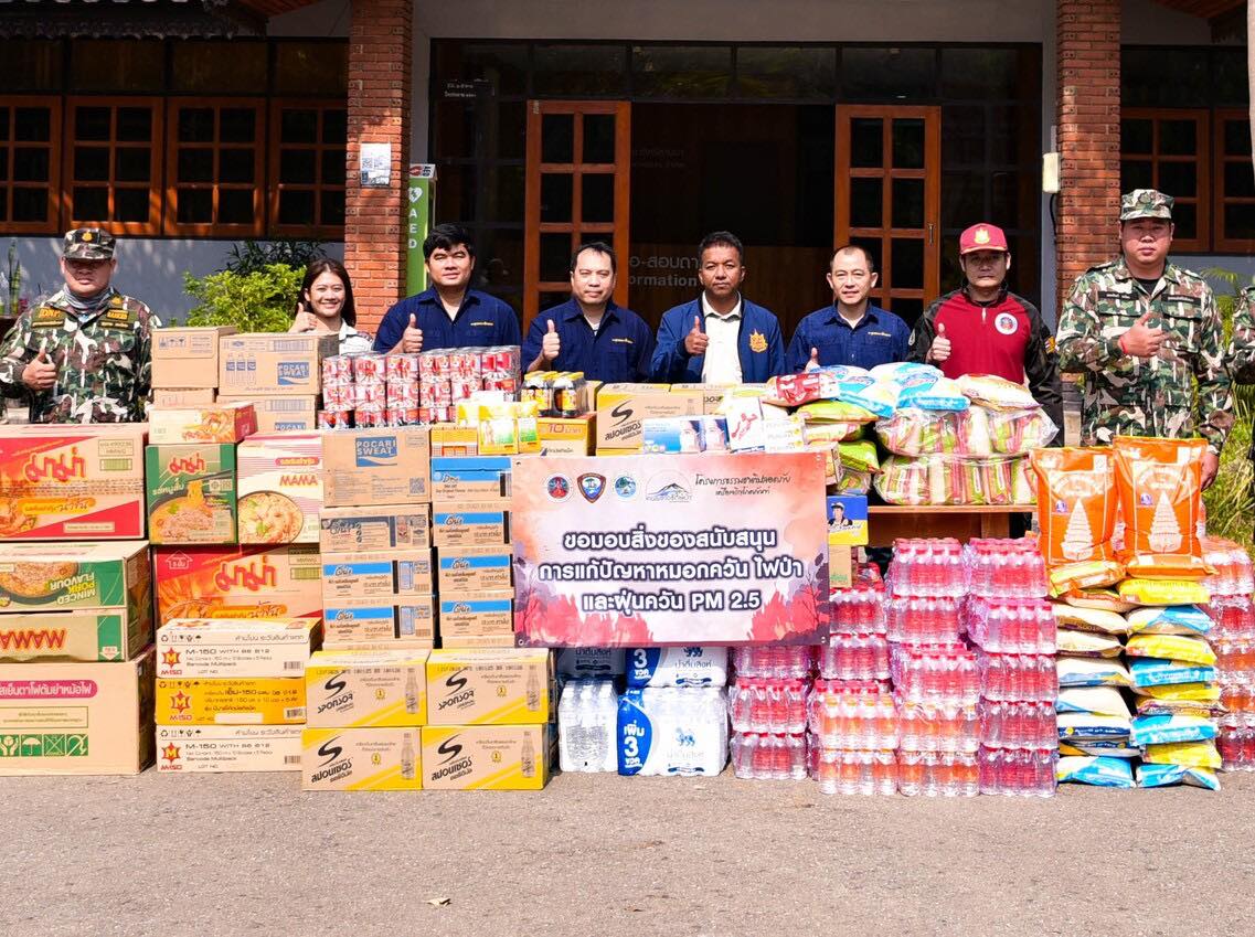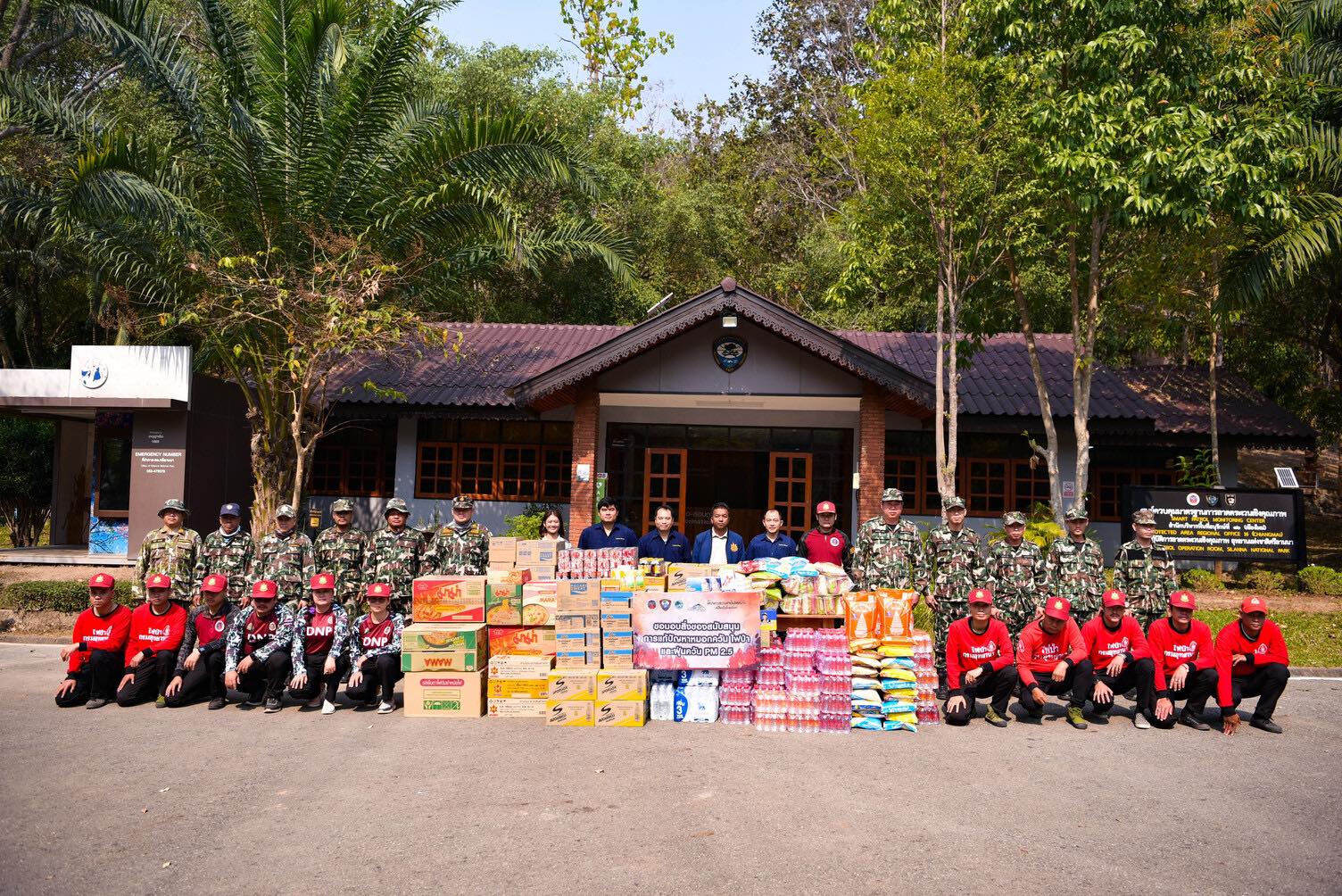 โครงการธรรมชาติปลอดภัยฯ มอบเสบียงอาหารและสิ่งของจำเป็นให้กับ อช.ศรีลานนา ผู้นำชุมชนและเครือข่ายอาสาสมัครพิทักษ์ป่า เพื่อสนับสนุนภารกิจควบคุมไฟป่าและแก้ปัญหา PM 2.5 ในพื้นที่อำเภอพร้าว