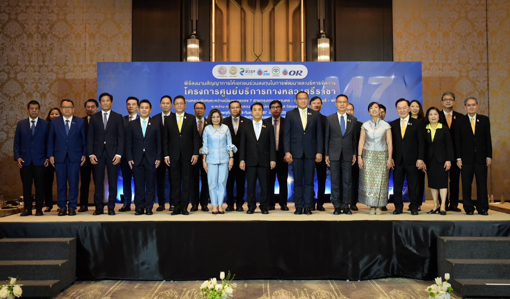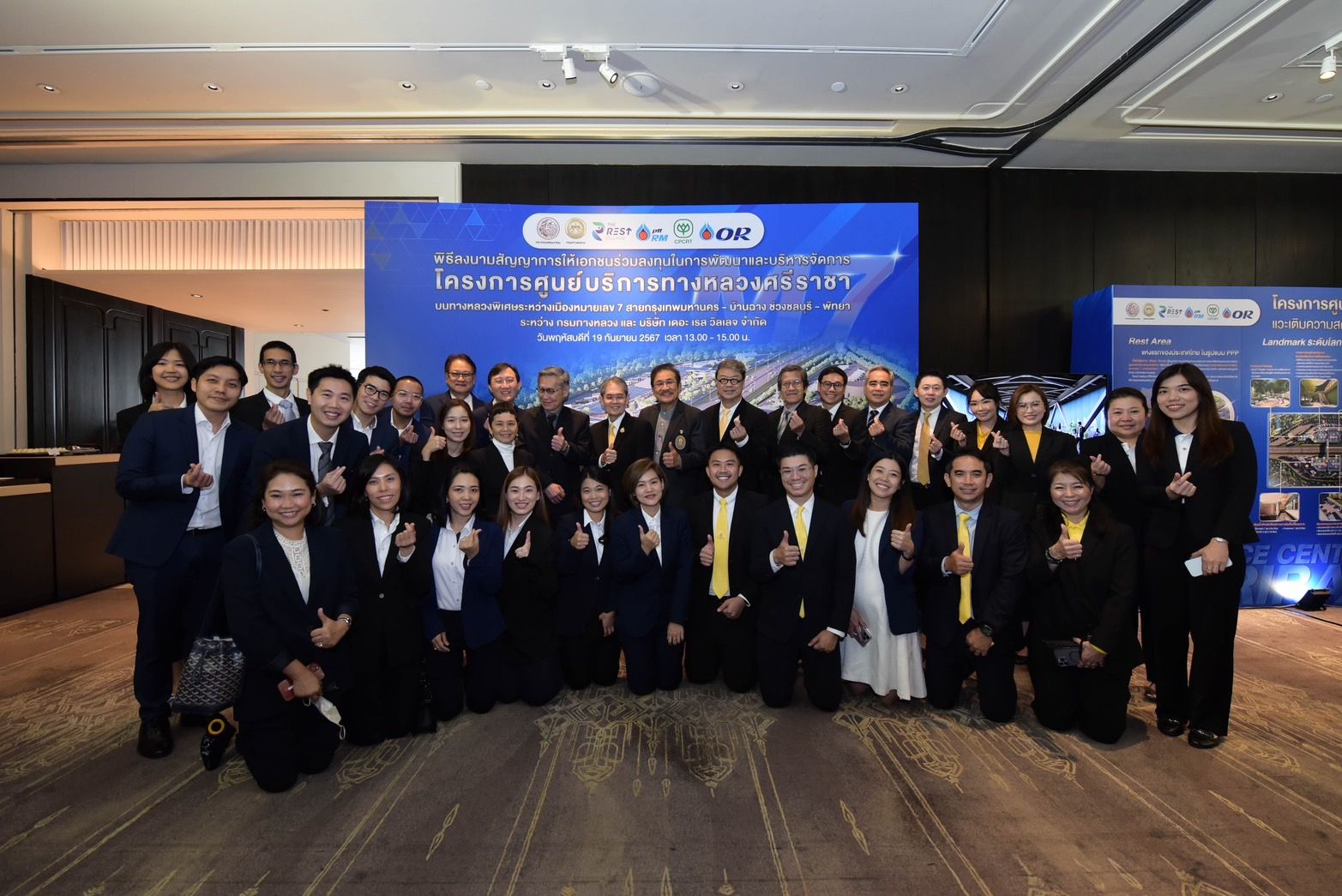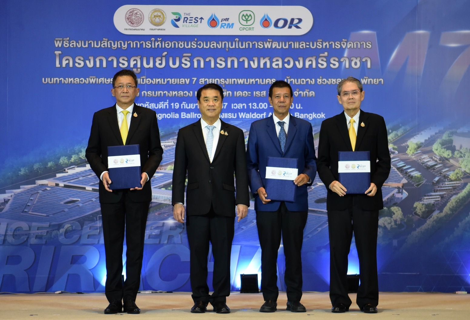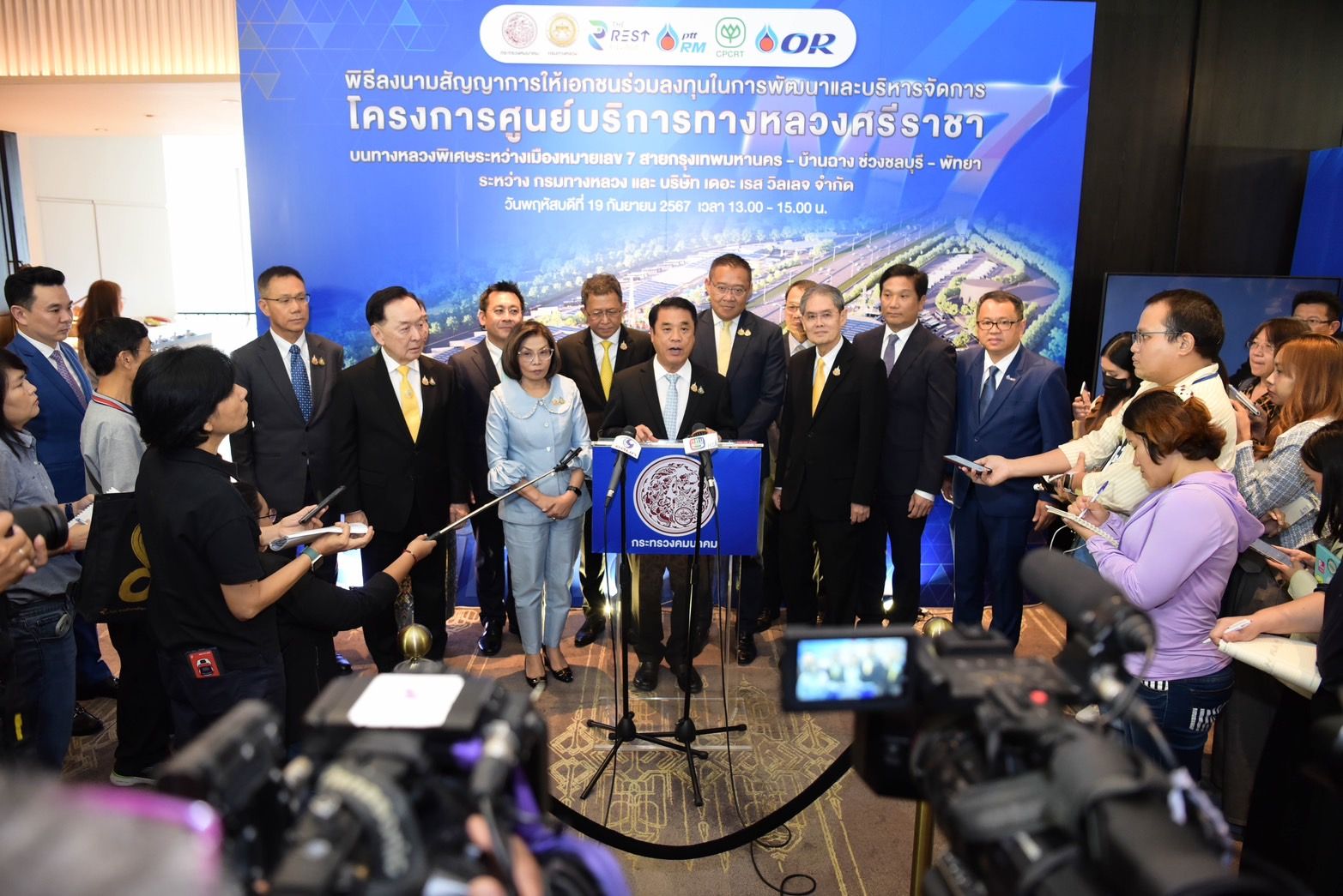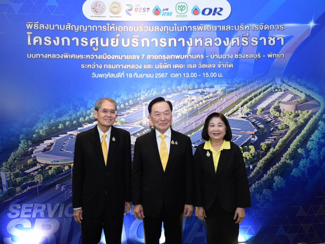 คุณสุริยะ จึงรุ่งเรืองกิจ รองนายกรัฐมนตรีและรัฐมนตรีว่าการกระทรวงคมนาคม เป็นประธานและสักขีพยานในพิธีลงนามสัญญาการให้เอกชนร่วมลงทุนในการพัฒนาและบริหารจัดการโครงการ ศูนย์บริการทางหลวงศรีราชา บนทางหลวงพิเศษระหว่างเมืองหมายเลข 7 สายกรุงเทพมหานคร – บ้านฉาง ช่วงชลบุรี – พัทยาระหว่าง กรมทางหลวง และ บริษัท เดอะ เรส วิลเลจ จำกัด พร้อมด้วยคุณสราวุธ ทรงศิวิไล อธิบดีกรมทางหลวง เมื่อวันที่ 19 กันยายน 2567 ณ โรงแรม Waldort Astoria Bangkok