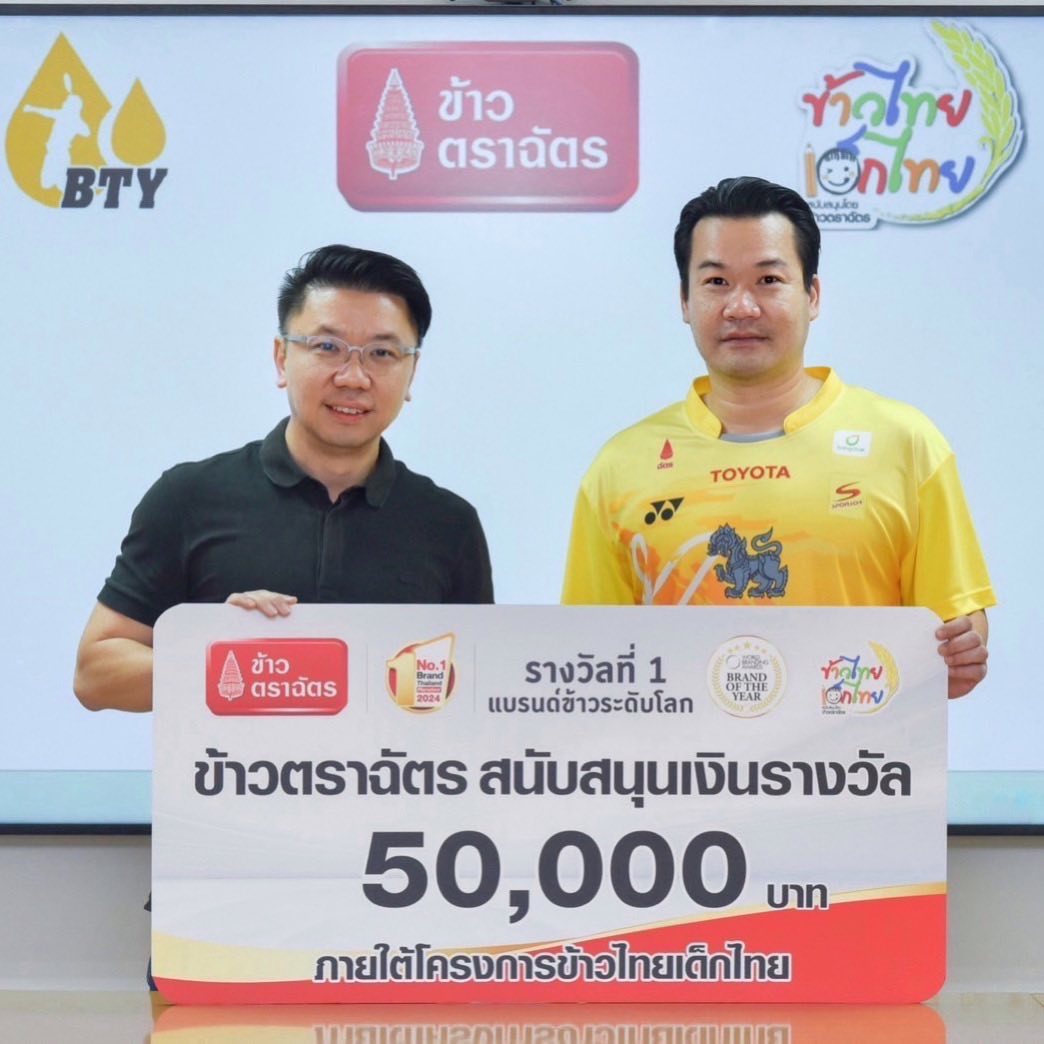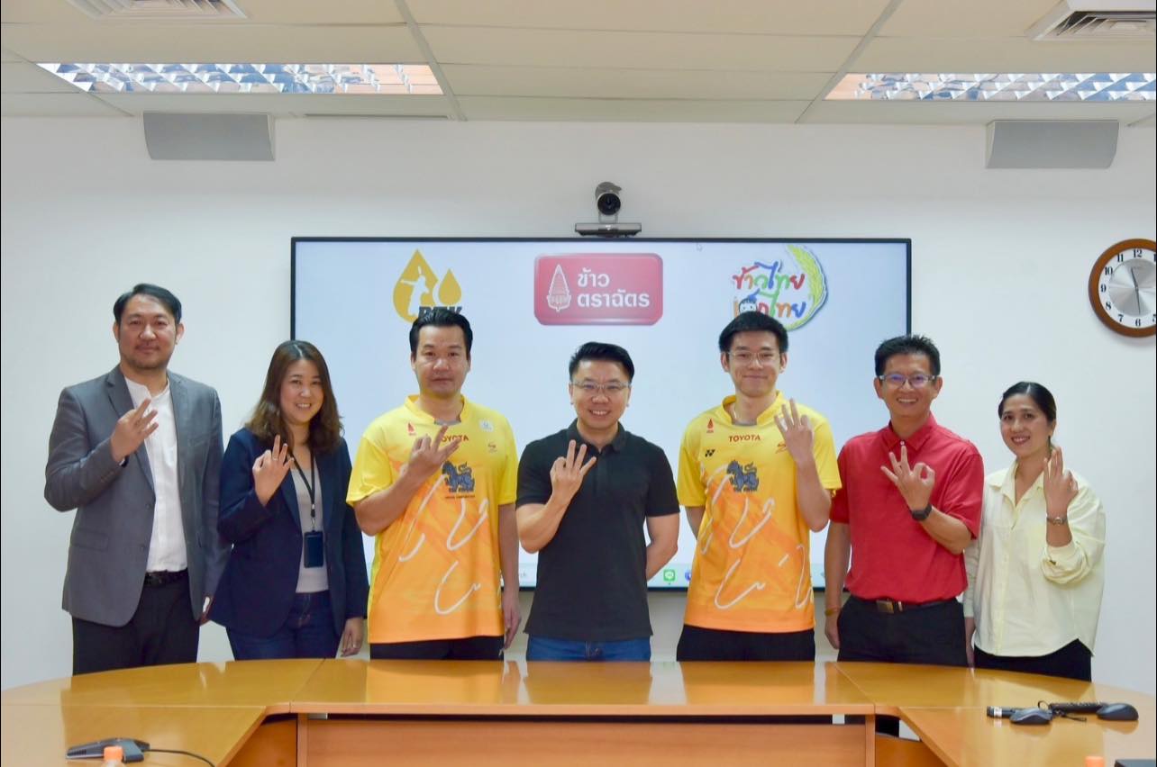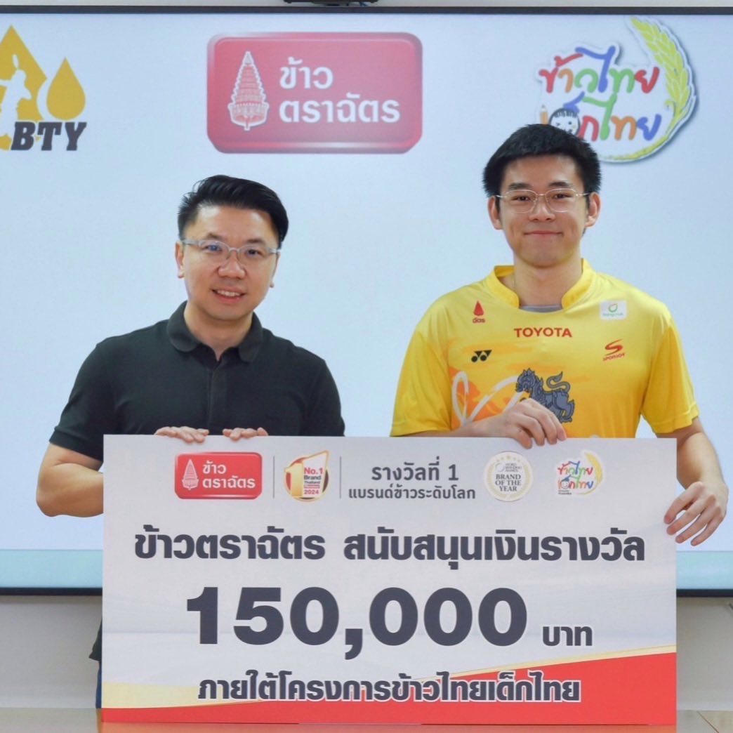 คุณยงยุทธ พฤกษ์มหาดำรง รองกรรมการผู้จัดการบริหาร ตัวแทนข้าวตราฉัตร และผู้บริหารให้การต้อนรับพร้อมแสดงความยินดีและมอบเงินสนับสนุนให้กับโค้ชเป้ ภัททพล เงินศรีสุข ,วิว กุลวุฒิ วิทิตศานต์ นักแบดมินตันมืออันดับ 2 ของโลก หลังคว้า 3 แชมป์ใหญ่ ประกอบด้วย Indonesia Masters 2025 (Super 500) ,Badminton Asia Championships 2025 และ Thailand Open 2025 (Super 500)