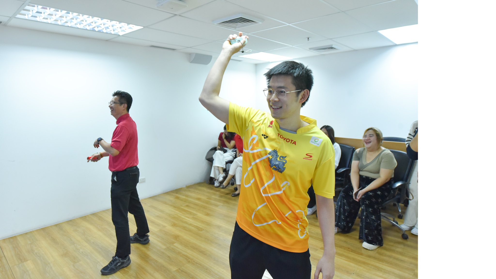 ซึ่งบรรยากาศการต้อนรับโค้ชเป้ และ วิว กุลวุฒิ ที่อาคารฟอร์จูนทาวเวอร์ ชั้น 23 เป็นไปด้วยความอบอุ่น สนุกสนาน พร้อมร่วมกิจกรรม CPCRT GAME ON! ที่เปิดโอกาสให้พนักงาน CPCRT ตีแบดกับแชมป์โลกดวลฝีมือ กับวิว กุลวุฒิ นักแบดมินตันขวัญใจชาวไทย ผ่านเกม Nintendo Switch – Badminton Smash Hit! ท้าแมตช์กับตัวจริงเสียงจริง ซึ่งสร้างรอยยิ้ม เสียงหัวเราะ และแรงบันดาลใจให้กับทุกคนที่เข้าร่วม