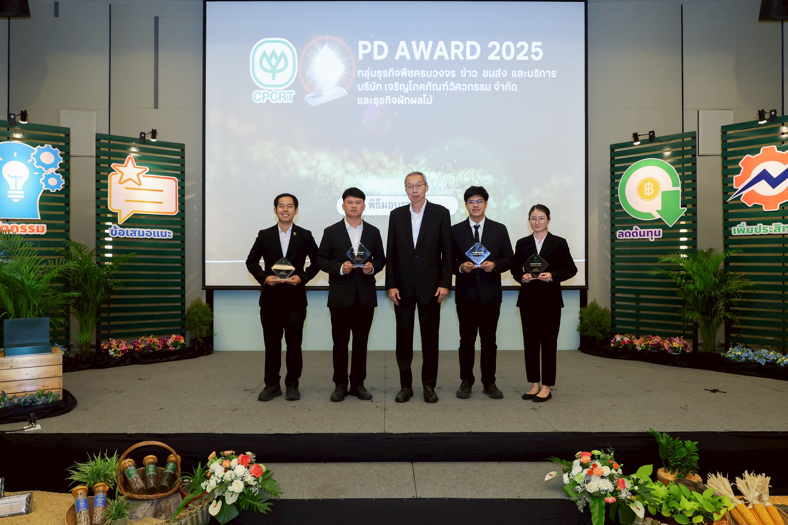 กลุ่มธุรกิจพืชครบวงจร ข้าว ขนส่งและบริการ มีความมุ่งมั่นที่ส่งเสริมให้พนักงานทุกระดับ กล้าคิด กล้าทำ และเรียนรู้จากความผิดพลาด เพื่อพัฒนากระบวนการทำงานให้ดียิ่งขึ้น จึงเป็นที่มาของโครงการ “PD AWARD” ที่จัดขึ้นเป็นประจำทุก 2 ปีมาตั้งแต่ปี 2556 เพื่อกระตุ้นพนักงานให้ปรับตัว แลกเปลี่ยนองค์ความรู้ระหว่างหน่วย และสร้างสรรค์สิ่งใหม่ๆ ที่ตอบสนองต่อการเปลี่ยนแปลงของโลก ความต้องการของลูกค้า ควบคู่ไปกับการใช้ทรัพยากรอย่างรู้คุณค่า เพื่อก้าวไปสู่การเติบโตของธุรกิจทั้งด้านเศรษฐกิจ สังคม สิ่งแวดล้อม อย่างยั่งยืน