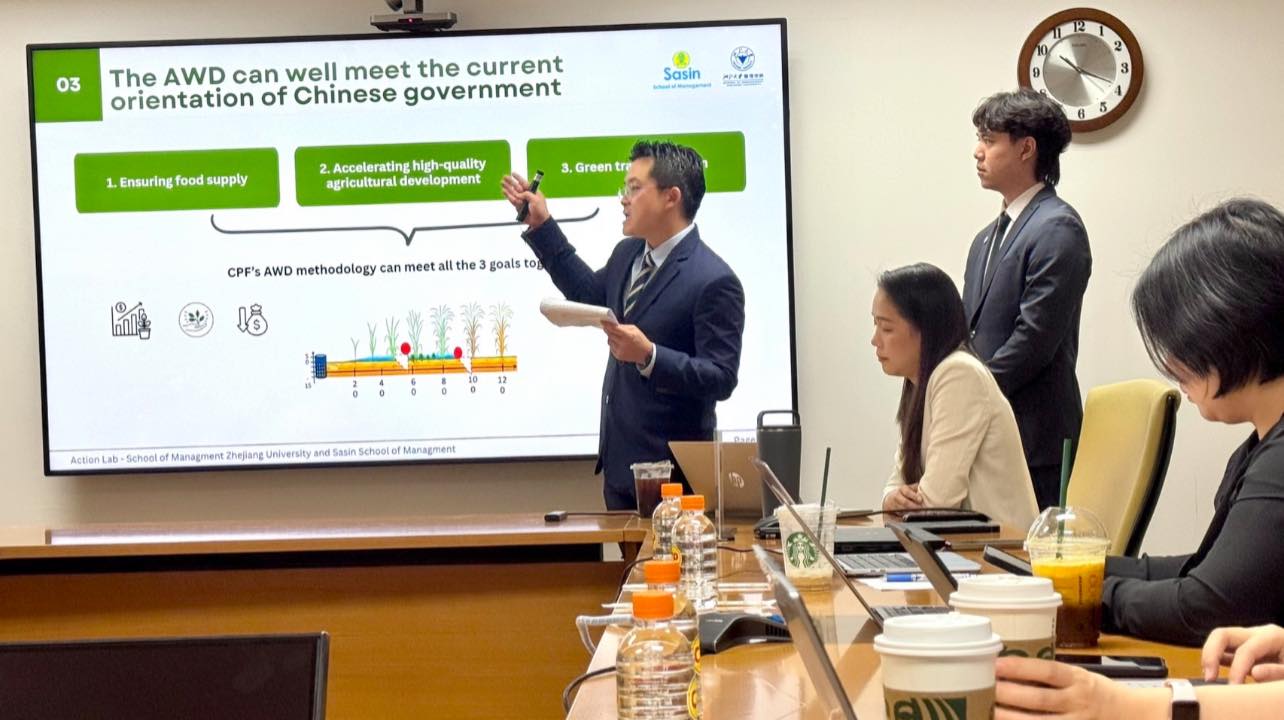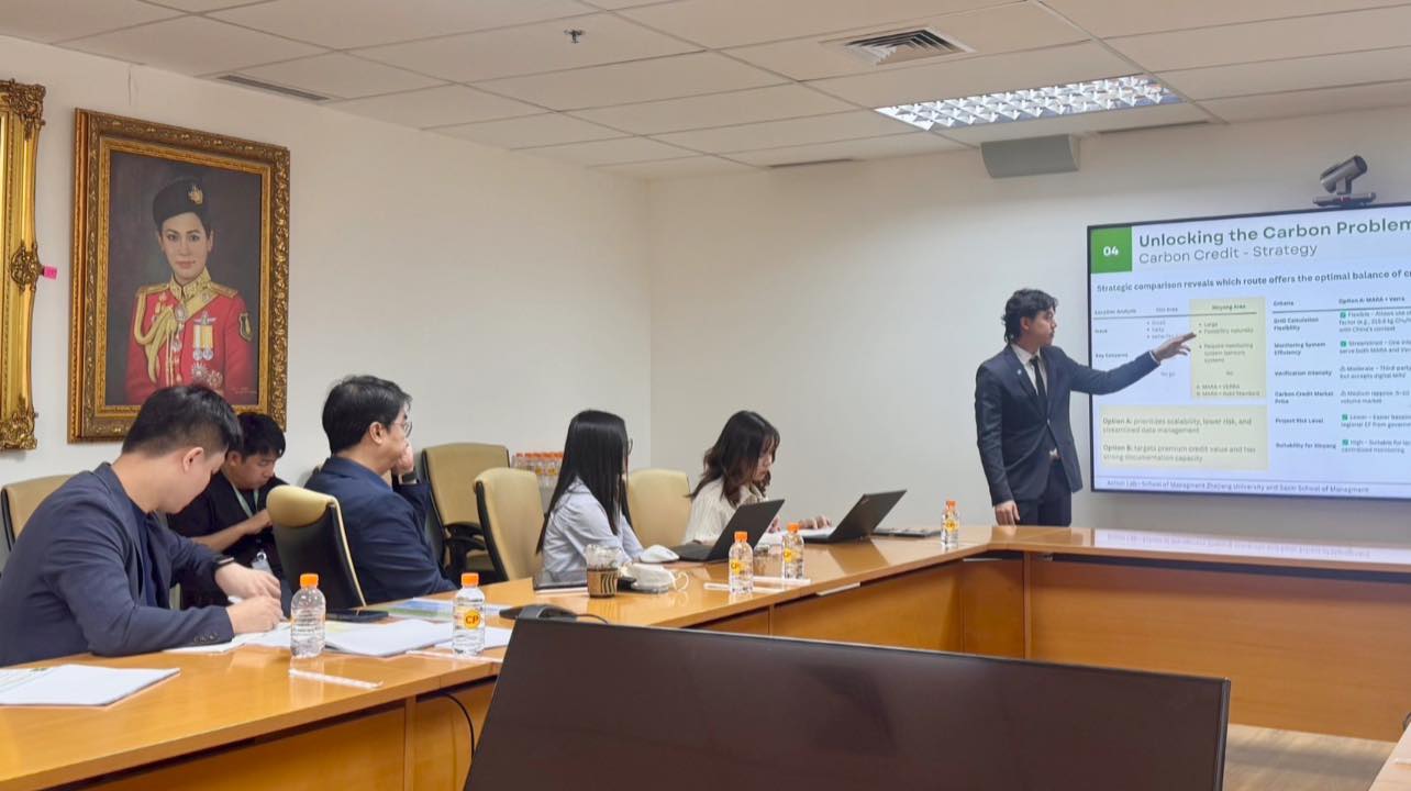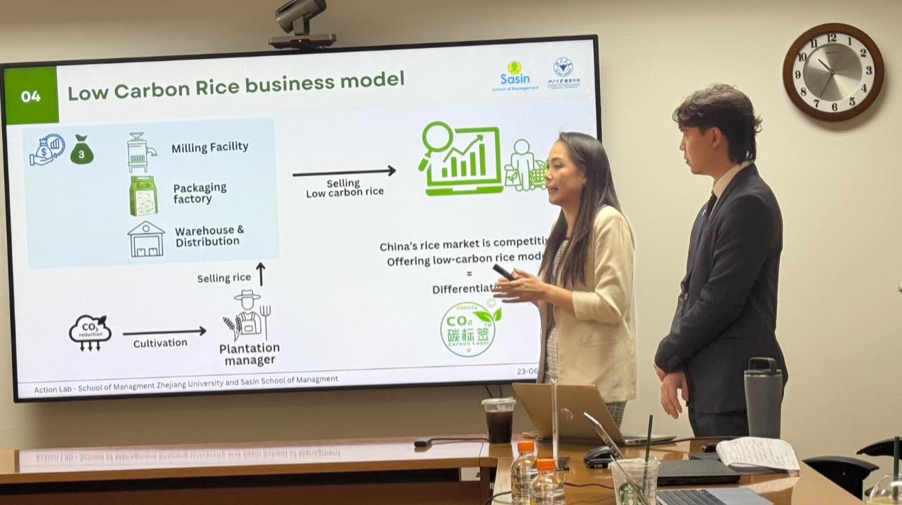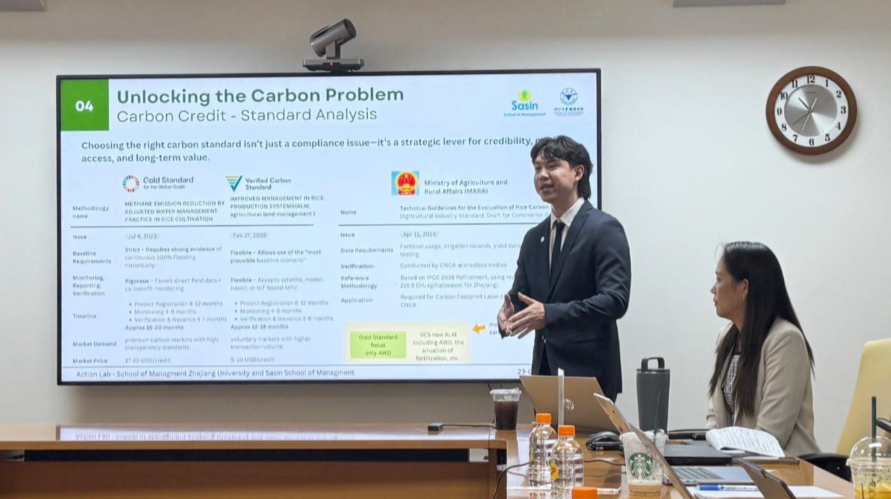 โดยในวันที่ 23 มิถุนายน 2568 ทีมงานจากศศินทร์และมหาวิทยาลัยเจ้อเจียงได้นำเสนอแผนธุรกิจสำหรับการพัฒนาคาร์บอนเครดิตในพื้นที่ประเทศจีน ซึ่งจะส่งต่อให้ทีมธุรกิจในประเทศจีนดำเนินการต่อไป สะท้อนให้เห็นถึงความมุ่งมั่นในการขับเคลื่อนการพัฒนาที่ยั่งยืนผ่านกลไกคาร์บอนเครดิต