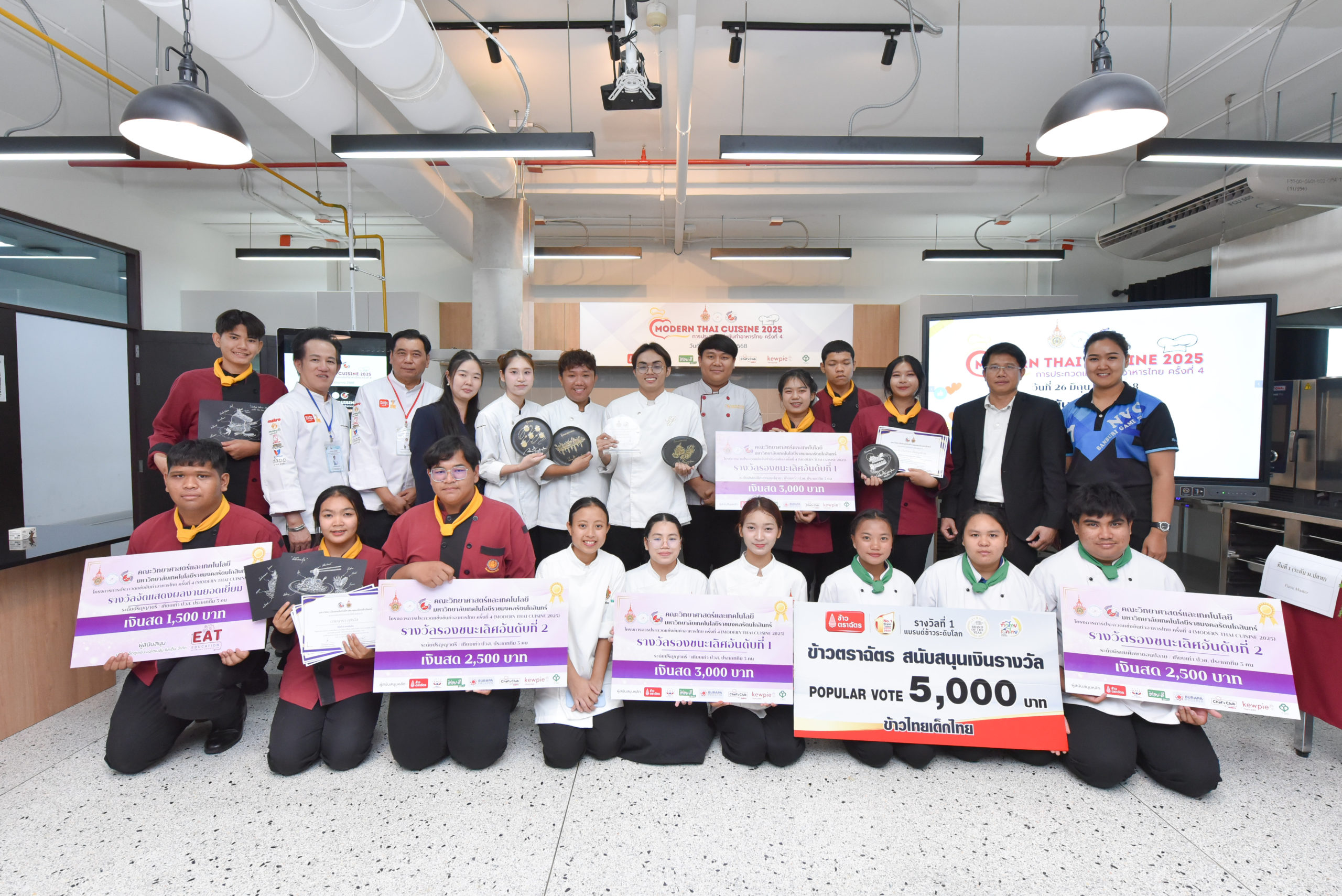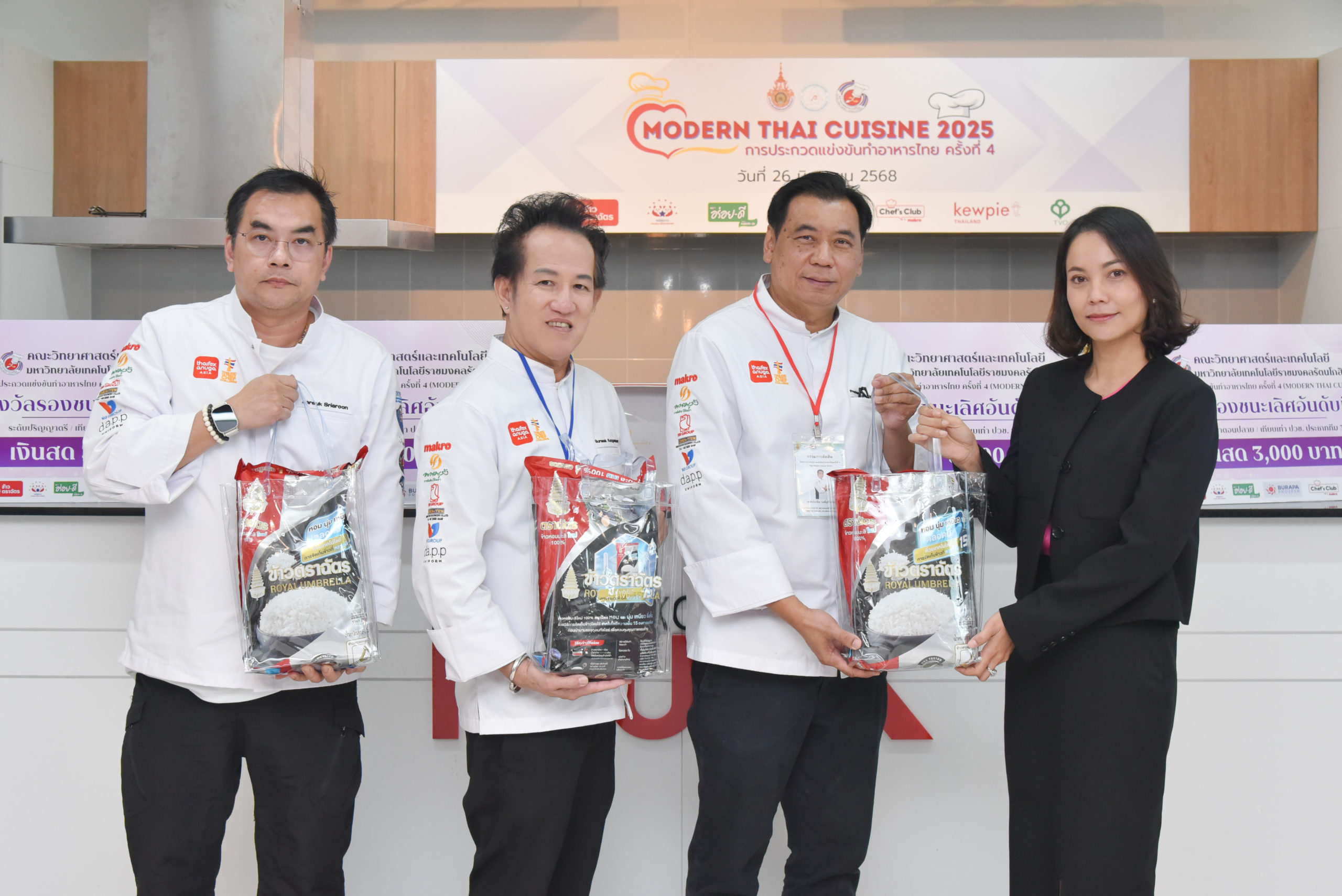 คุณริญญภัสร์ ภัทรศักดิ์วัฒน์ รองกรรมการผู้จัดการ ด้านงานขายช่องทาง RU Professional ตัวแทนจากข้าวตราฉัตร ร่วมมอบรางวัลให้ผู้ชนะการประกวดแข่งขันทำอาหารไทย ครั้งที่ 4 (Modern Thai Cuisine 2025)ในระดับชั้นมัธยมศึกษาและมหาวิทยาลัย ประจำปีการศึกษา 2568 ที่จัดขึ้นโดย คณะวิทยาศาสตร์และเทคโนโลยี สาขาวิชาวิทยาการแปรรูปและการประกอบอาหารมหาวิทยาลัยเทคโนโลยีราชมงคลรัตนโกสินทร์ ศาลายา จ.นครปฐม