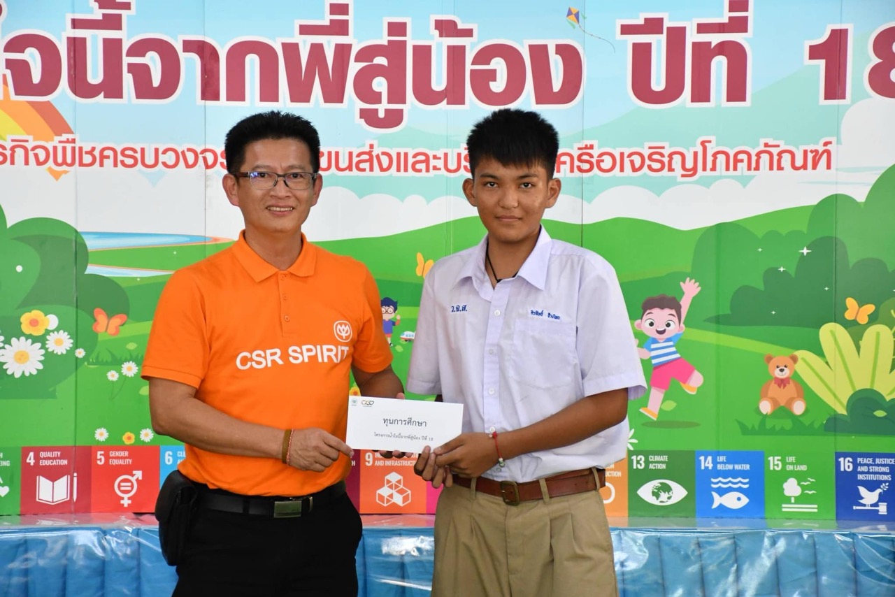 พร้อมลงพื้นที่ เยี่ยมบ้านส่งต่อกำลังใจ ให้กับนักเรียนที่มีความประพฤติดี มีจิตอาสา แต่ขาดแคลนทุนทรัพย์ในปี2567โครงการน้ำใจนี้จากพี่สู่น้องปีที่ 18 ผู้บริหารและพนักงานธุรกิจ CPCRT ร่วมส่งมอบทุนการศึกษา รวม 203 ทุน รอบสถานประกอบการ 23 พื้นที่ใน 16 จังหวัด เพื่อลดความเหลื่อมล้ำ เสริมสร้างโอกาสการเข้าถึงการศึกษาที่เท่าเทียม และยังได้สร้างการมีส่วนร่วมระหว่างผู้บริหารและพนักงานซีพีจิตอาสา CSR SPIRIT