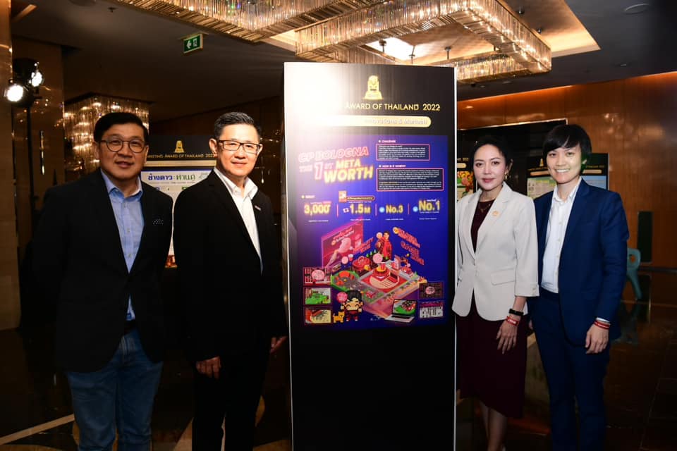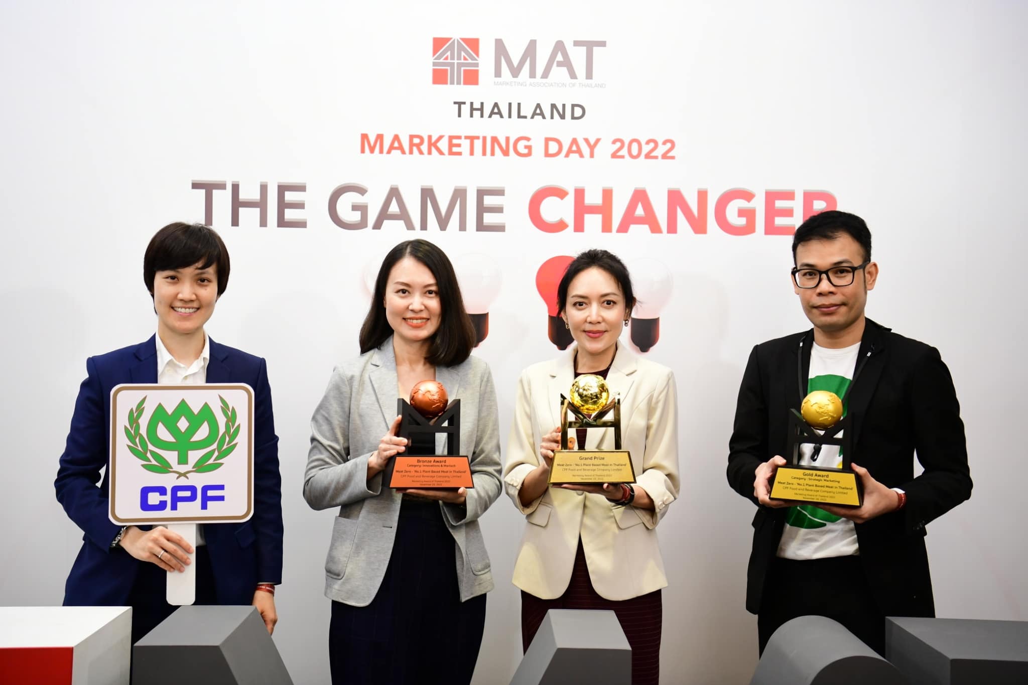 CPF คว้า 4 รางวัล จากการประกวด Marketing Award of Thailand 2022 (MAT Award 2022) จัดโดย สมาคมการตลาดแห่งประเทศไทย โดยผลิตภัณฑ์เนื้อจากพืชแบรนด์ “MEAT ZERO” ได้รับรางวัล Grand Prize สุดยอดแคมเปญการตลาดแห่งปี จากคะแนนสูงสุดแต่ละในกลุ่มรางวัล และได้รับคะแนนโหวตสูงสุดจากคณะกรรมการผู้ตัดสิน คณะกรรมการสมาคมการตลาด ตลอดจนคณะที่ปรึกษากิตติมศักดิ์ของโครงการ นอกจากนี้ ยังคว้ารางวัลระดับ Gold ประเภทการตลาดที่มีความเป็นเลิศด้านกลยุทธ์ (Strategic Marketing) หลังประสบความสำเร็จขึ้นแท่นเป็นผู้นำตลาดอันดับ 1 ในระยะเวลาเพียง 18 เดือน พร้อมรางวัลประเภทการตลาดที่มีความเป็นเลิศด้านนวัตกรรมและเทคโนโลยี (Innovations & Martech) มาครองถึง 2 ผลิตภัณฑ์ ได้แก่ “MEAT ZERO” และ “CP โบโลน่า”