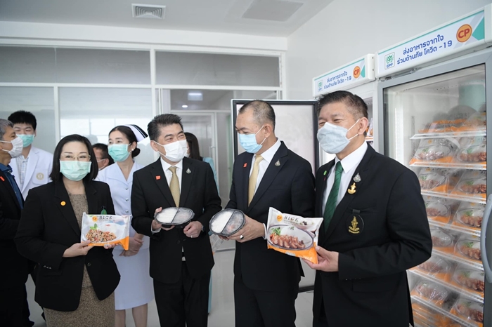 คุณเฉลิมชัย ศรีอ่อน รัฐมนตรีว่าการกระทรวงเกษตรและสหกรณ์ และคณะ พร้อมด้วย คุณประสิทธิ์ บุญดวงประเสริฐ CEOซีพีเอฟ ร่วมส่งมอบผลิตภัณฑ์อาหารปลอดภัยให้แก่บุคลากรทางการแพทย์ โรงพยาบาลผู้สูงอายุบางขุนเทียน เพื่อขอบคุณและให้กำลังใจทีมแพทย์ พยาบาล และเจ้าหน้าที่ โดยมี นพ.สุขสันต์ กิตติศุภกร ผอ.สำนักการแพทย์ กทม. และ พญ.อัมพร เกียรติปานอภิกุล ผู้อำนวยการ รพ.ผู้สูงอายุบางขุนเทียน รับมอบ