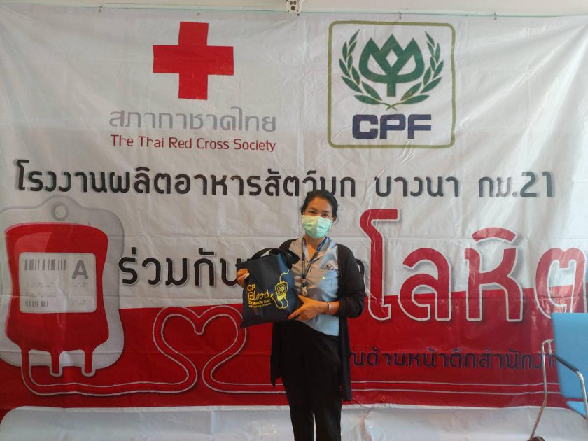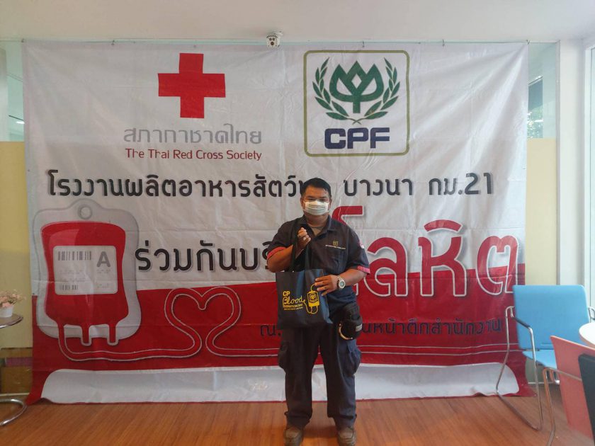 คุณนิธิพงศ์ นงค์นาค ผู้ช่วยกรรมการผู้จัดการ นำพนักงาน CPF จิตอาสา โรงงานผลิตอาหารสัตว์บกบางนา กม.21 ร่วมกับ สภากาชาดไทย จัดกิจกรรมบริจาคโลหิต เพื่อสำรองโลหิตในภาวะปกติและเตรียมความพร้อมรองรับกับภาวะวิกฤติที่มีความต้องการโลหิตอย่างเร่งด่วนที่อาจเกิดขึ้น พร้อมทั้งมอบผลิตภัณฑ์ซีพีและของที่ระลึกให้แก่ผู้ร่วมบริจาคโลหิต