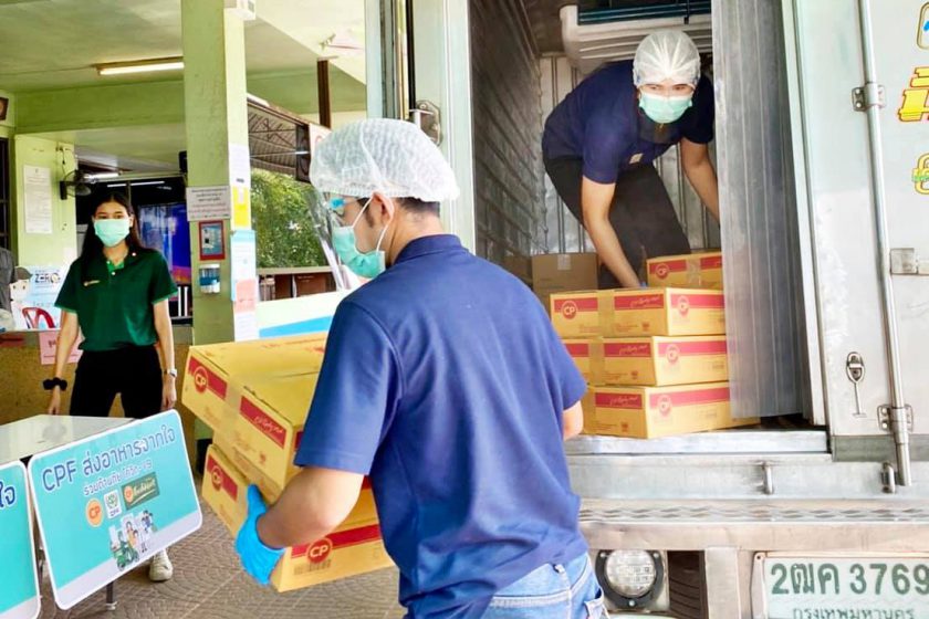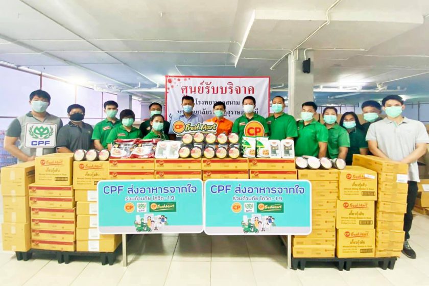โครงการ “CPF ส่งอาหารจากใจ ร่วมต้านภัยโควิด-19” ริเริ่มในปี 2563 จนถึงปัจจุบัน ตามนโยบายของเครือซีพี การระบาดระลอกใหม่ตั้งแต่เดือน เม.ย. CPF มอบอาหารสำเร็จรูปพร้อมทานหลากหลายเมนู กว่า 27,000 แพ็ค และน้ำดื่ม 6,000 ขวด ให้แก่ รพ.หลัก และ รพ.สนาม ต่างๆ นอกจากนี้ ยังสนับสนุนวัตถุดิบจาก CPF ได้แก่ เนื้อหมูสด เนื้อไก่สด ไข่ไก่ น้ำดื่ม และข้าวสาร สำหรับปรุงเป็นอาหารพร้อมทาน ให้กับ รพ.สนามในทั่วประเทศ