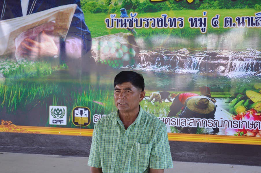 พ่อชีพ เล่าว่า CPF ช่วยแก้ปัญหาเรื่องการกระจายน้ำให้ชุมชนด้วย จากเดิมมีหอสูง 1 ถัง สำหรับกักเก็บน้ำ 30,000 ตัน บริษัทฯ สนับสนุนอุปกรณ์ทำให้ชุมชนมีน้ำที่กักไว้ใช้เพิ่มอีก 8,000 ลิตร และถังประจำแปลงทั้ง 25 แปลงที่ปลูกพืช ทำให้สมาชิกของศูนย์ฯ มีน้ำใช้ในการเพาะปลูกอย่างเพียงพอและทั่วถึง