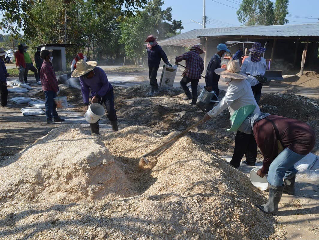 ปัจจุบัน สมาชิก 62 คน ของศูนย์ฯ รวมตัวกันผลิตปุ๋ยหมักเปลือกไข่ใช้เอง โดยได้รับการสนับสนุนวัตถุดิบ ทั้งเปลือกไข่และมูลไก่ ซึ่งเป็นส่วนประกอบสำคัญในการทำปุ๋ยจากโรงฟักชัยภูมิ ธุรกิจไก่ปู่-ย่าพันธุ์เนื้อ ของ CPF ภายใต้โครงการ “โครงการสร้าง สาน สุข วิถีชุมชน ศูนย์ฯ สามารถผลิตปุ๋ยหมักเปลือกไข่ได้ปีละ 10,000 กระสอบ เพื่อแจกให้สมาชิกนำไปใช้กับไร่ นา และสวน และอีกส่วนหนึ่งเพื่อจำหน่าย