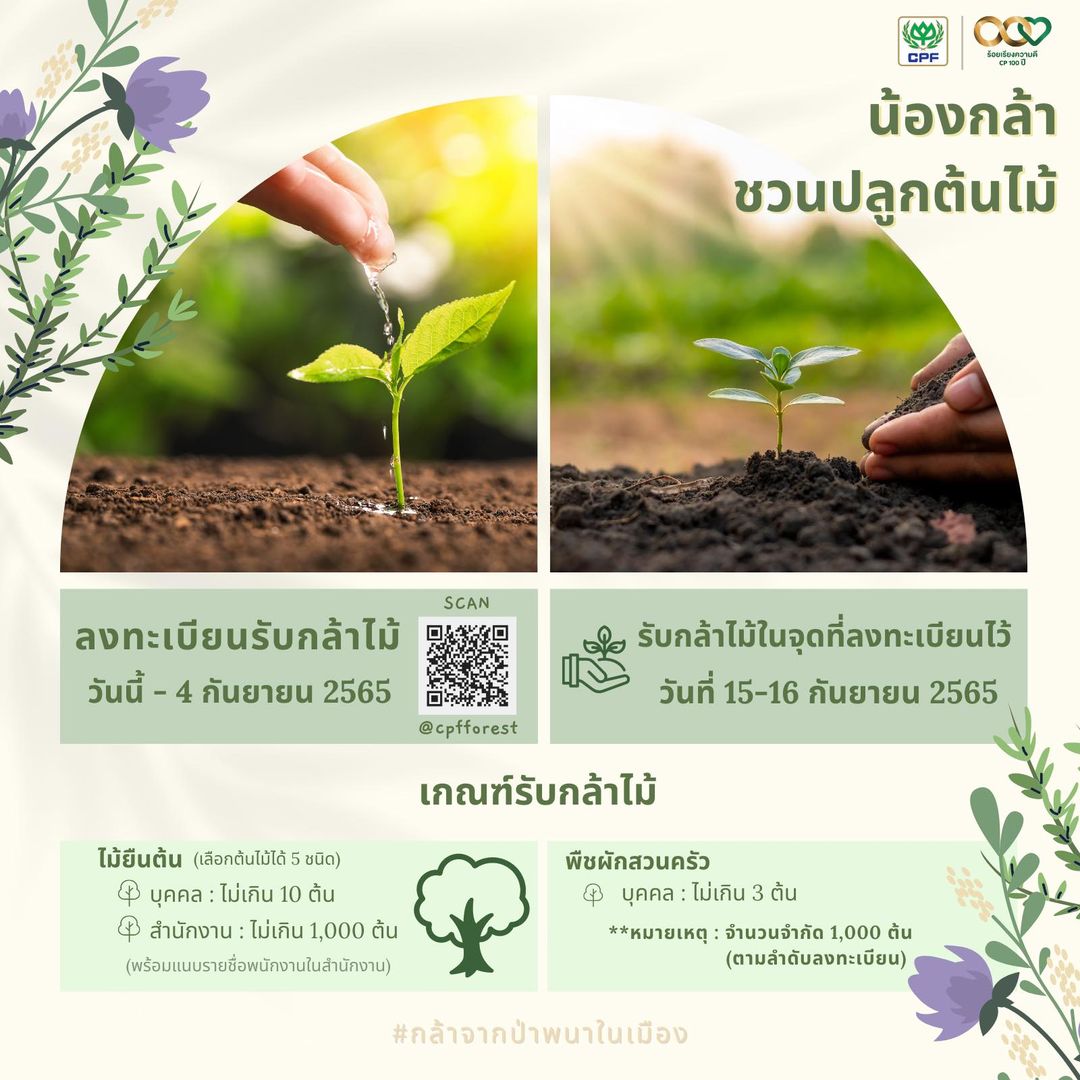 CPF จัดกิจกรรม “กล้าจากป่า พนาในเมือง” ปีที่ 2 ชวนพนักงานร่วมกันปลูกต้นไม้ที่บ้านหรือสถานประกอบการทั่วไทย เพื่อเพิ่มพื้นที่สีเขียวและบรรเทาปัญหาภาวะโลกร้อน