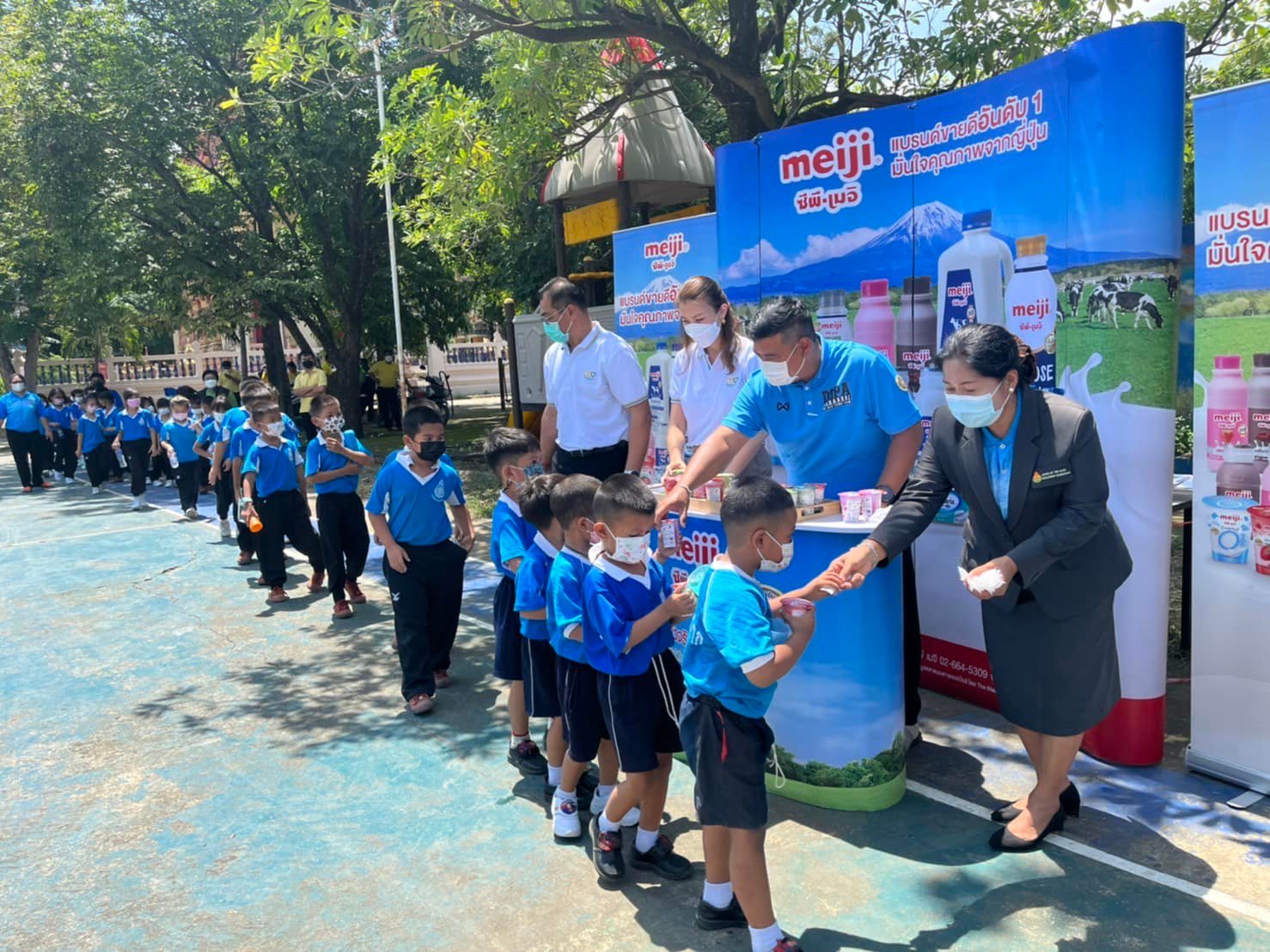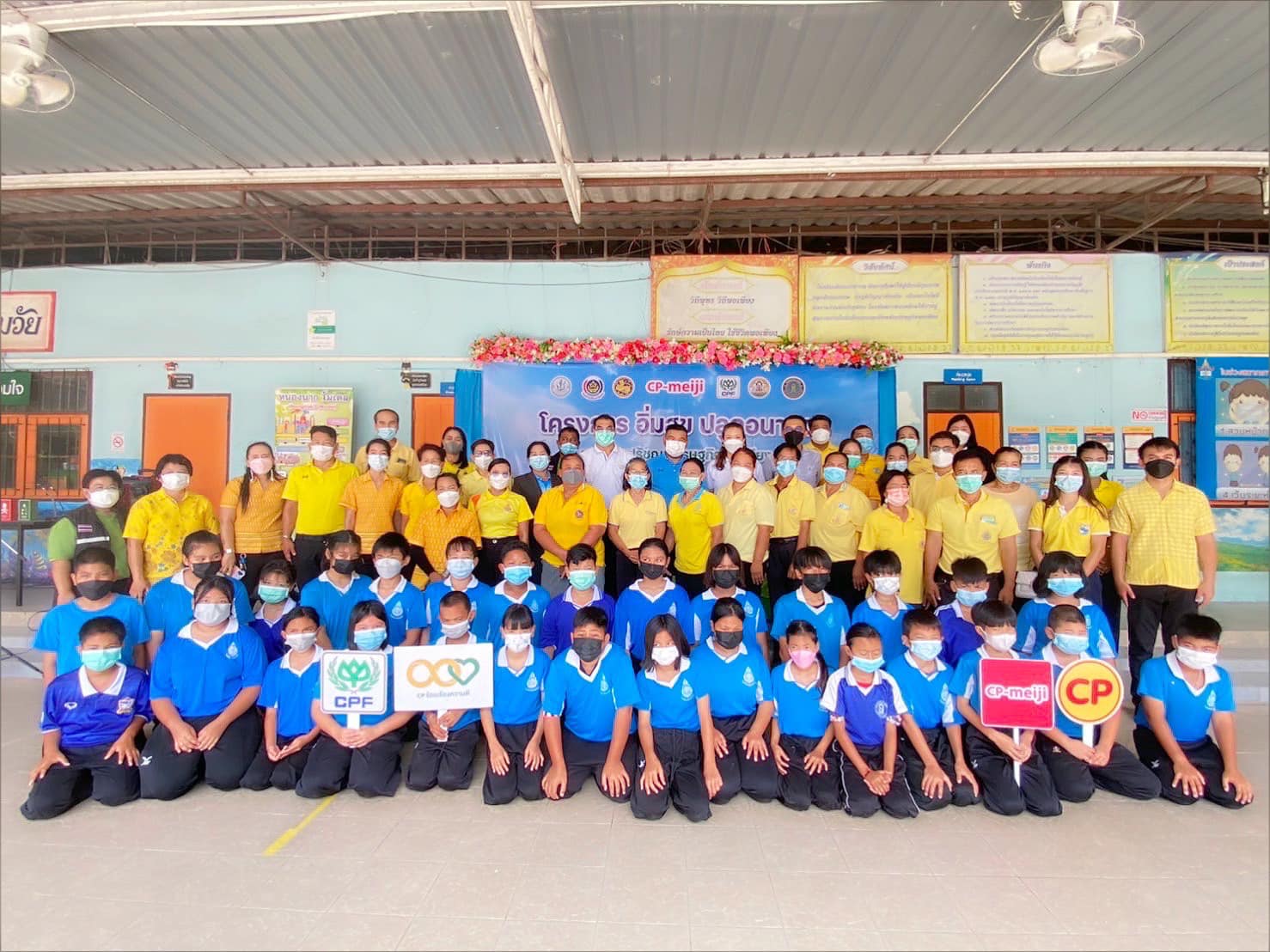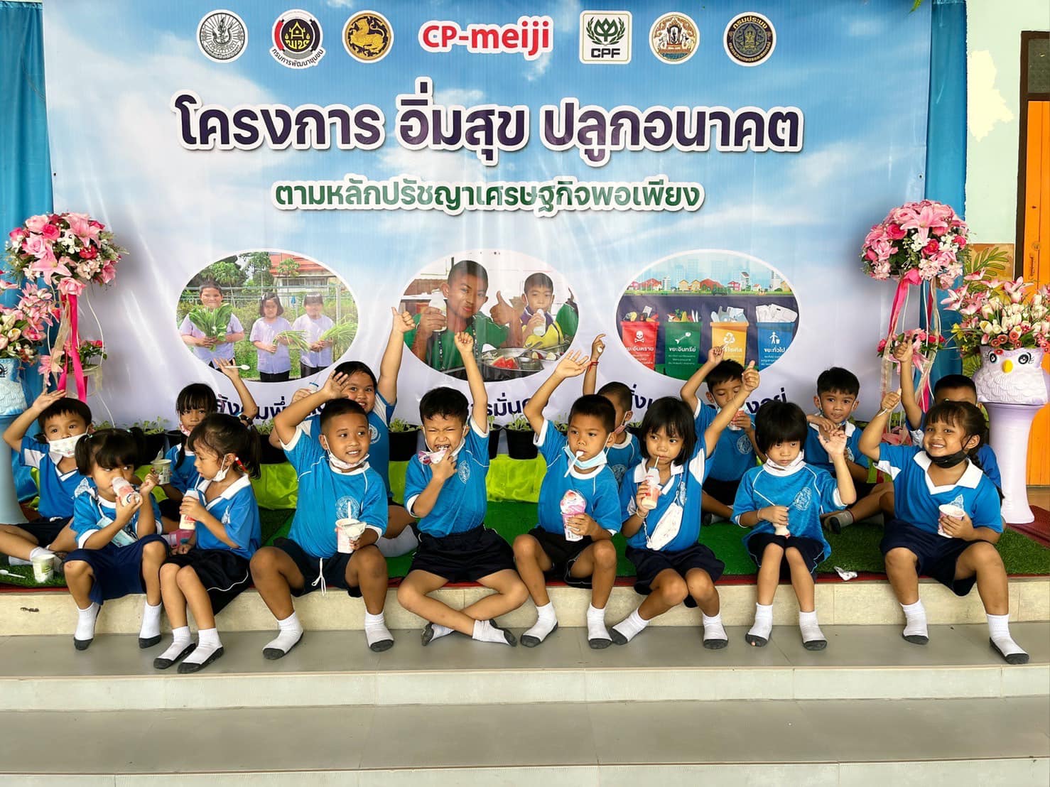 ด้าน คุณชาลินี พูนลาภมงคล ผู้ช่วยกรรมการผู้จัดการ ซีพี – เมจิ กล่าวว่า บริษัทฯ มีนโยบายด้านความยั่งยืน สังคม และสิ่งแวดล้อม โดยเฉพาะด้าน “อาหารมั่นคง” เพื่อส่งเสริมการเข้าถึงอาหารคุณภาพปลอดภัยอย่างทั่วถึง จึงร่วมกับ ภาครัฐ ภาคประชาสังคม จัดโครงการ “ซีพี-เมจิ อิ่มสุข ปลูกอนาคต” สร้างแหล่งอาหาร แหล่งเรียนรู้ พัฒนาเป็นโรงเรียนต้นแบบและขยายผลสู่ชุมชนอย่างเข้มแข็งเพื่อคุณภาพชีวิตที่ดีอย่างยั่งยืน สอดคล้องกับหลักปรัชญา 3 ประโยชน์ ของเครือซีพี ในการทำประโยชน์ให้กับประเทศชาติ ประชาชน และบริษัท