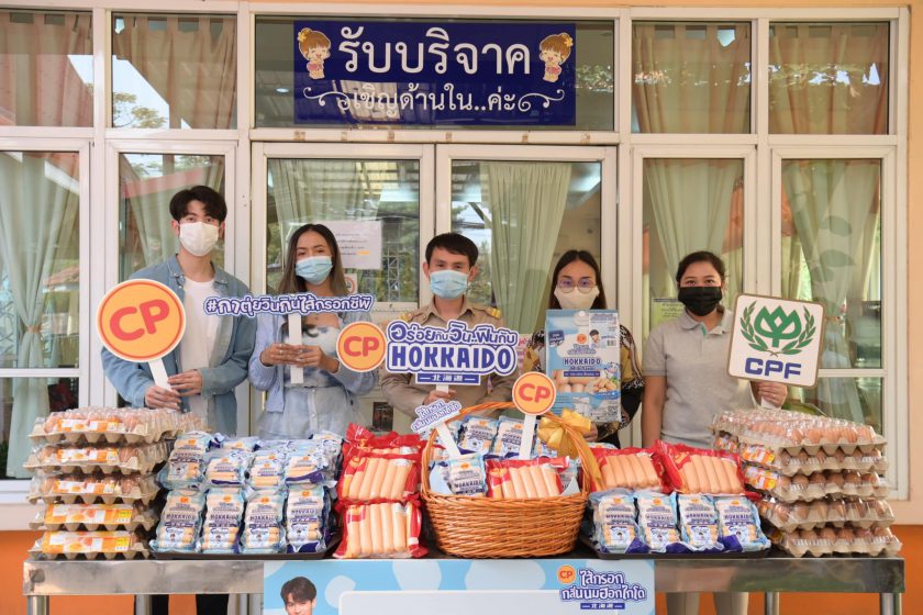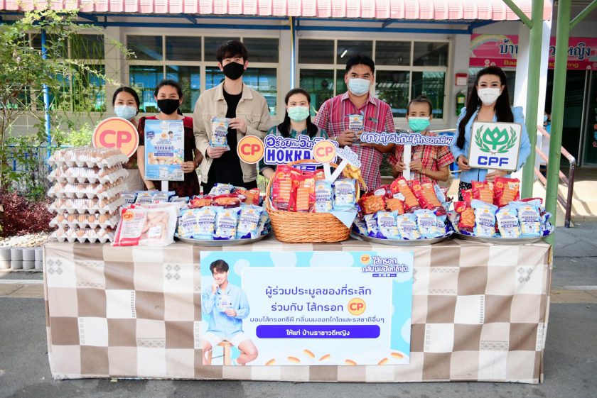 คุณอนรรฆวี ชูรัตน์ รองกรรมการผู้จัดการอาวุโส ด้านการตลาดกลาง CPF ร่วมกับ ผู้ร่วมประมูลและแฟนคลับกาตุ่ยวิน ได้แก่ คุณสศิรา รุ่งเรือง, คุณธัชรี บุญภูพันธ์ตันติ, คุณดาราพร แจ่มนุช และคุณอาริตา จินดา มอบไส้กรอกซีพี กลิ่นนมฮอกไกโด ที่ได้จากการประมูลของที่ระลึกในงานแถลงข่าวเปิดตัวสินค้าใหม่ไส้กรอกนมฮอกไกโด Global Live “อินกับวิน ฟินกับ CP Hokkaido” มูลค่ากว่า 200,000 บาท นอกจากนี้ ซีพีเอฟ ยังร่วมสมทบการบริจาคด้วยผลิตภัณฑ์อาหารคุณภาพ อาทิ เนื้อหมู เนื้อไก่ ไข่ไก่สด และไส้กรอกซีพี ให้แก่ มูลนิธิบ้านนกขมิ้น, สถานสงเคราะห์เด็กหญิงราชวิถี, สถานสงเคราะห์เด็กอ่อนปากเกร็ด, บ้านราชาวดีหญิง และบ้านเฟื่องฟ้า จ.นนทบุรี