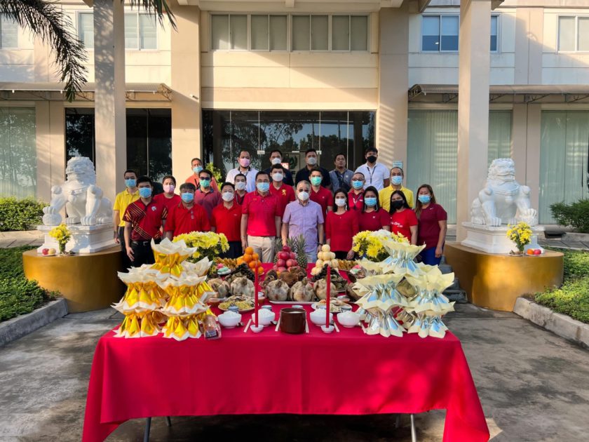 Mr. Sakol Cheevakoset, Vice Chairman and president of CPF Philippines joined with management team and employees to make offerings to the spirits in Chinese New Year 2022 for propitiousness. The tradition was arranged at Tarlac’s Feed mill in Bataan province under Covid-19 preventive measures.