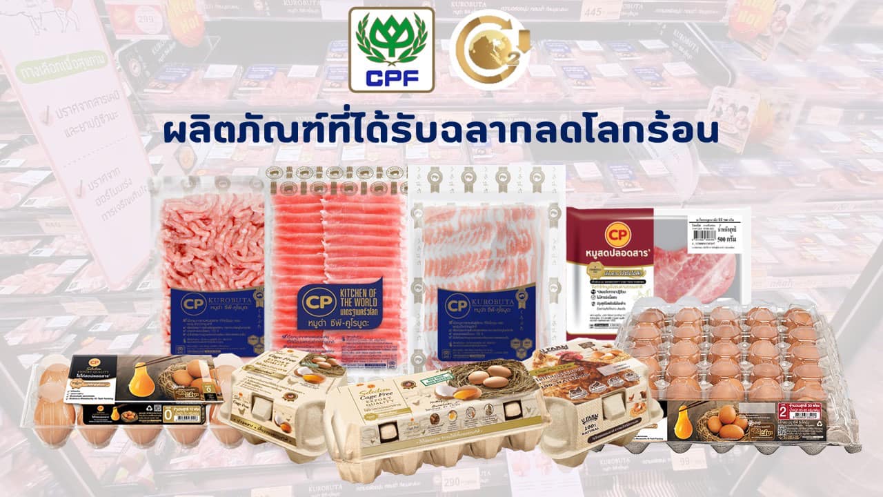 คุณอรพรรณ มั่งมีศรี ผอ.สำนักระบบมาตรฐานสากล CPF เปิดเผยว่า บริษัทฯ ให้ความสำคัญกับการพัฒนาผลิตภัณฑ์คาร์บอนต่ำอย่างต่อเนื่อง เพื่อช่วยลดการปล่อยก๊าซเรือนกระจกตามเป้าหมายลดการปล่อยก๊าซเรือนกระจกสุทธิเป็นศูนย์ (Net-Zero) ปัจจุบัน มีผลิตภัณฑ์ที่ได้รับการประเมินและได้รับฉลากคาร์บอนฟุตพริ้นท์ จาก อบก. มากกว่า 800 รายการ ทั้งหมู ไก่ กุ้ง อาหารสัตว์ และผลิตภัณฑ์คาร์บอนต่ำที่ได้รับรองฉลากลดโลกร้อน กว่า 50 รายการ อาทิ อาหารไก่เนื้อ ไก่มีชีวิต เป็ดมีชีวิต สุกรขุน เนื้อไก่สด เนื้อเป็ดสด เนื้อหมูสด และไข่ไก่สด ช่วยลดปล่อยก๊าซเรือนกระจกรวม 2.3 ล้านตันคาร์บอนไดออกไซด์เทียบเท่า