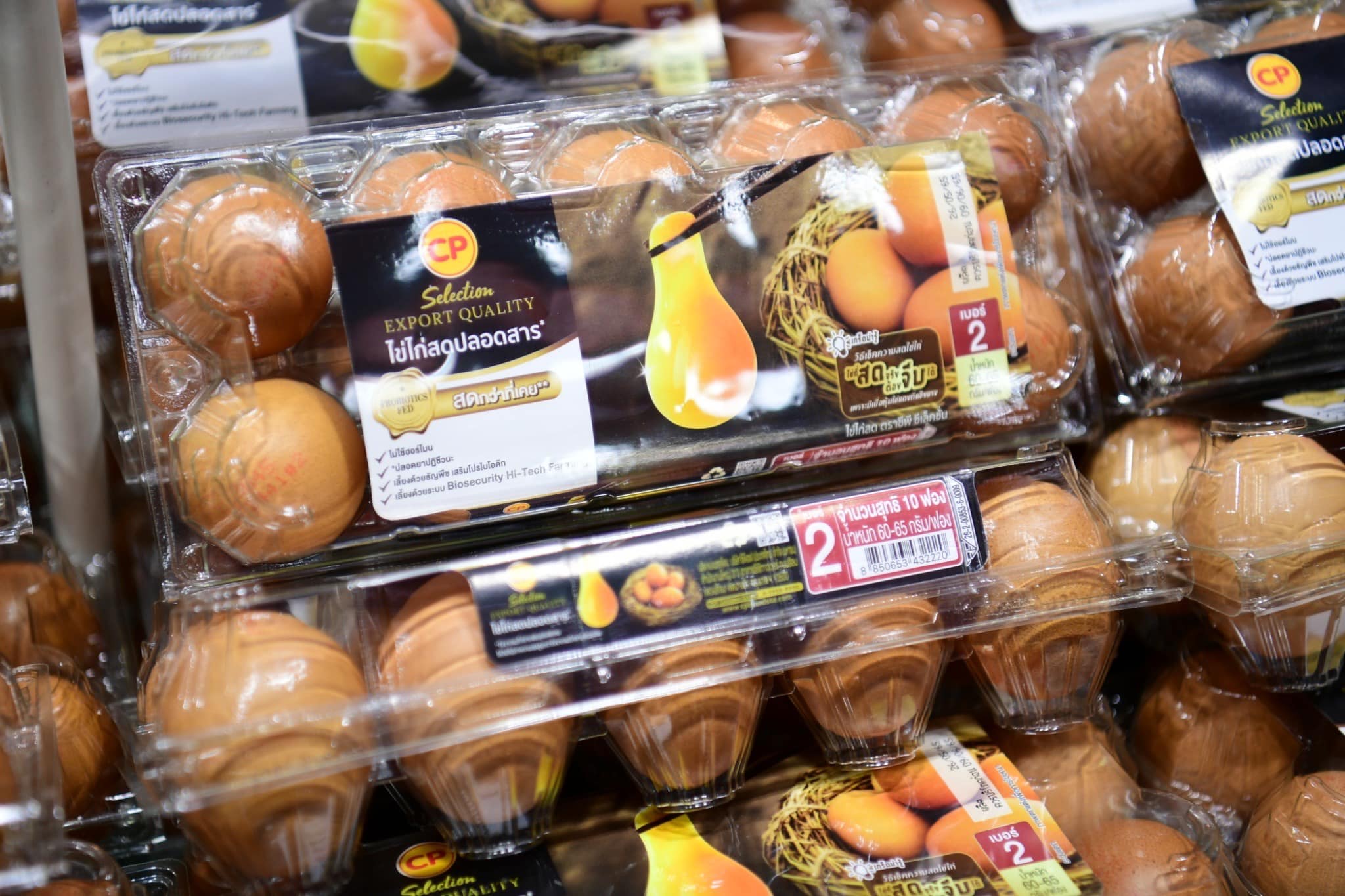 ในปี 2565 ผลิตภัณฑ์ CPF ที่ได้รับฉลากคาร์บอนฟุตพริ้นท์และฉลากลดโลกร้อน จาก อบก. ได้แก่ ไข่ไก่สด 25 รายการ อาทิ ไข่ไก่เคจฟรี และไข่ไก่สดปลอดสารขนาดบรรจุต่างๆ ซึ่งประมาณการว่าช่วยลดการปล่อยก๊าซเรือนกระจกได้ 617,000 ตันคาร์บอนไดออกไซด์เทียบเท่า