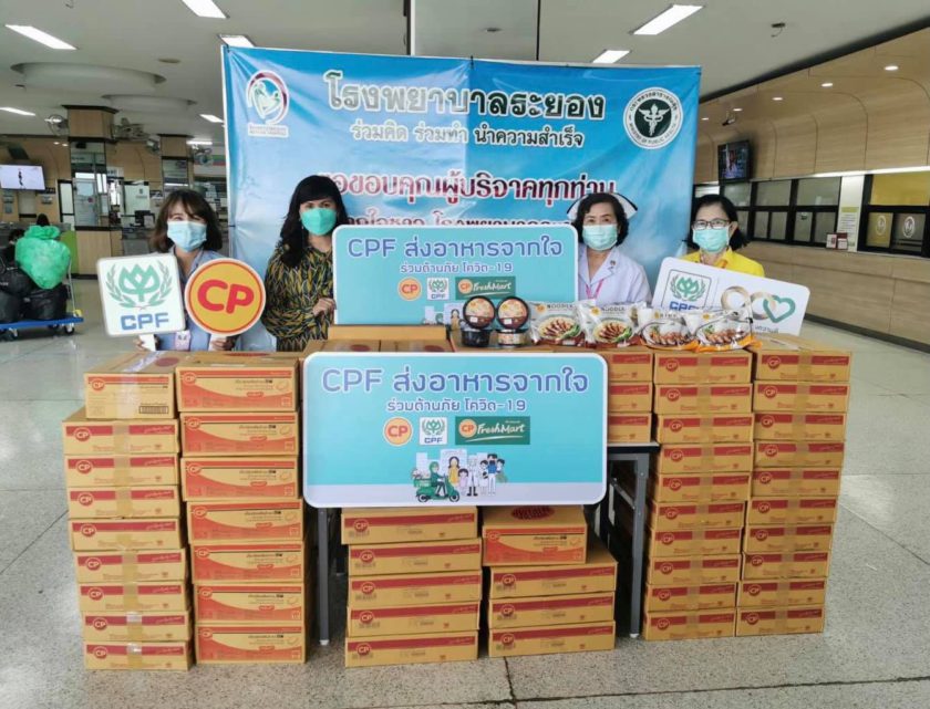โครงการ “CPF ส่งอาหารจากใจ ร่วมต้านภัยโควิด-19” ดำเนินการมาตั้งแต่ปี 2563 จนถึงปัจจุบัน ตามนโยบายของเครือเจริญโภคภัณฑ์ ภายใต้โครงการ “ซีพีร้อยเรียงใจ สู้ภัยโควิด-19” และนับตั้งแต่เกิดวิกฤตโควิด จากวันแรก…ถึงวันนี้ ซีพี–ซีพีเอฟ มอบอาหารพร้อมทานเพื่อบุคลากรทางการแพทย์และพี่น้องคนไทยแล้วหลายล้านแพ็ค รวมถึงน้ำดื่มและเครื่องดื่มเพื่อสุขภาพหลายล้านขวด ตลอดจนวัตถุดิบอาหารสดและเครื่องปรุงรส สำหรับนำไปปรุงอาหาร แก่โรงพยาบาลหลัก โรงพยาบาลสนาม กลุ่มเปราะบาง ศูนย์ฉีดวัคซีน และหน่วยงานต่างๆ กว่า 300 แห่งทั่วประเทศ ทั้งนี้ CPF ยังคงเดินหน้าส่งมอบความช่วยเหลือด้านอาหารอย่างต่อเนื่อง เพื่อร่วมเคียงข้างคนไทยก้าวผ่านวิกฤตโควิด-19 ไปด้วยกัน