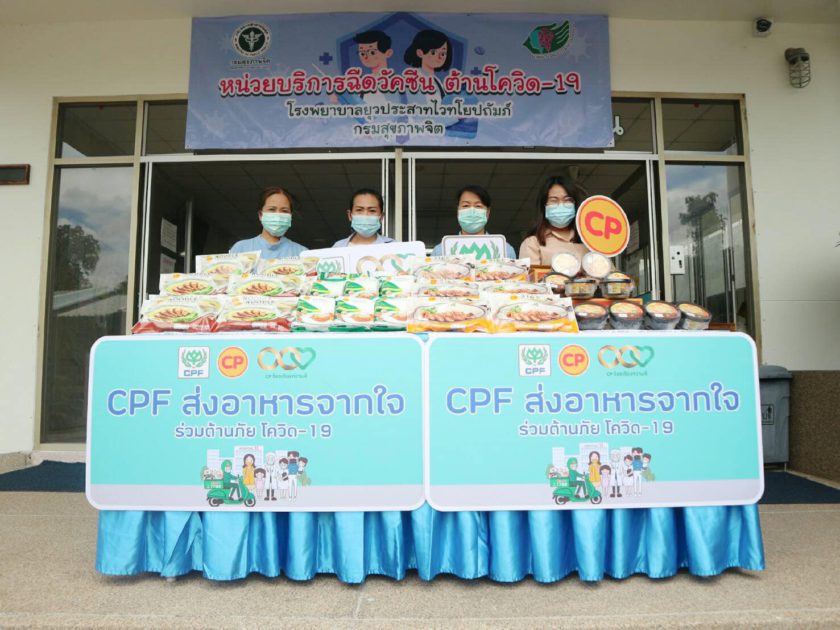 โครงการ “CPF ส่งอาหารจากใจ ร่วมต้านภัยโควิด-19” ดำเนินการมาตั้งแต่ปี 2563 จนถึงปัจจุบัน ตามนโยบายของเครือเจริญโภคภัณฑ์ ภายใต้โครงการ “ซีพีร้อยเรียงใจ สู้ภัยโควิด-19” และนับตั้งแต่เกิดวิกฤตโควิด จากวันแรก…ถึงวันนี้ ซีพี–ซีพีเอฟ มอบอาหารพร้อมทานเพื่อบุคลากรทางการแพทย์และพี่น้องคนไทยแล้วหลายล้านแพ็ค รวมถึงน้ำดื่มและเครื่องดื่มเพื่อสุขภาพหลายล้านขวด ตลอดจนวัตถุดิบอาหารสดและเครื่องปรุงรส สำหรับนำไปปรุงอาหาร แก่โรงพยาบาลหลัก โรงพยาบาลสนาม กลุ่มเปราะบาง ศูนย์ฉีดวัคซีน และหน่วยงานต่างๆ กว่า 300 แห่งทั่วประเทศ ทั้งนี้ CPF ยังคงเดินหน้าส่งมอบความช่วยเหลือด้านอาหารอย่างต่อเนื่อง เพื่อร่วมเคียงข้างคนไทยก้าวผ่านวิกฤตโควิด-19 ไปด้วยกัน