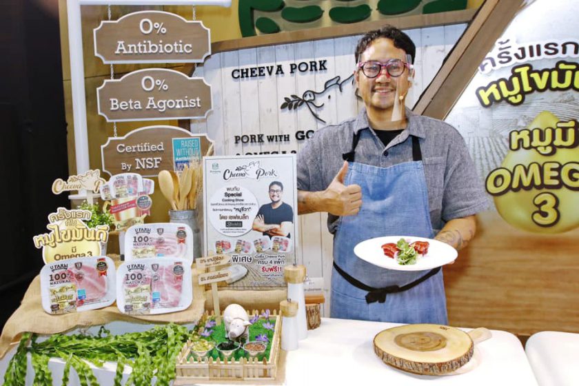 คุณกฤษณ มรกต และ คุณอนรรฆวี ชูรัตน์ รองกรรมการผู้จัดการอาวุโส CPF พร้อมด้วย คุณวรวัชร ตันตรานนท์ กรรมการผู้จัดการ บ.ตันตราภัณฑ์ ซุปเปอร์มาร์เก็ต จำกัด นำนวัตกรรมอาหารเพื่อสุขภาพ “หมูชีวา” หรือ ชีวา พอร์ค (Cheeva Pork) จากแบรนด์ยูฟาร์ม ซึ่งเป็นหมูสายพันธุ์พิเศษหนึ่งเดียวและครั้งแรกของไทย ที่อุดมไปด้วยโอเมก้า 3 สูง ช่วยลดความเสี่ยงของโรคหลอดเลือดหัวใจ