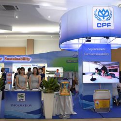 บูธ CPF ได้ร่วมโชว์ศักยภาพความเป็นผู้นำในการผลิตกุ้งที่ยั่งยืนตลอดห่วงโซ่อุปทาน ตั้งแต่การผลิตอาหารสัตว์ที่มาจากการผลิตจากโรงงานที่ได้มาตรฐานโลก ใช้วัตถุดิบที่ดีมีคุณภาพ ปลอดจากการทำประมงผิดกฎหมาย การผลิตลูกพันธุ์กุ้งที่เป็นสายพันธุ์ที่ดีที่สุดในโลก มีอัตราการเจริญเติบโตสูงมากเป็นที่ยอมรับระดับโลก ปลอดโรค ทนต่อสภาพแวดล้อมและทนโรค และมีระบบการจัดการการเลี้ยงกุ้งที่เป็นมิตรต่อสิ่งแวดล้อม โดยใช้เทคโนโลยีที่ทันสมัย ตั้งแต่เทคโนโลยีการทรีตน้ำ ช่วยเพิ่มประสิทธิภาพและความแม่นยำในการผลิตกุ้ง สนับสนุนความสำเร็จที่ยั่งยืนให้เกษตรกรผู้เลี้ยงกุ้งไทยในการผลิตกุ้งทั้งปริมาณและคุณภาพ สะอาดปลอดภัย ปลอดยาปฏิชีวนะ เป็นมิตรต่อสิ่งแวดล้อม ตรวจสอบย้อนกลับได้ สร้างความเชื่อมั่นให้กับผู้บริโภคทั่วโลก