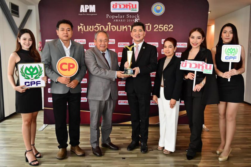 CEO CPFคุณประสิทธิ์ บุญดวงประเสริฐ รับรางวัลหุ้นขวัญใจมหาชน (Popular Stock Awards) ในกลุ่มเกษตรและอุตสาหกรรมอาหาร จากการประเมินค่าความนิยมของนักลงทุน ที่มีต่อหุ้นสามัญบริษัทจดทะเบียนในตลาดหลักทรัพย์แห่งประเทศไทย จากกลุ่มตัวอย่างกว่า 4,000 ตัวอย่าง นับเป็นครั้งที่ 3 ที่ CPF ได้รับรางวัลนี้ โดยมี คุณชาญชัย สงวนวงศ์ ผู้อำนวยการหนังสือพิมพ์ข่าวหุ้นธุรกิจ เป็นผู้มอบ ณ อาคาร ซี.พี.ทาวเวอร์ สีลม กรุงเทพฯ