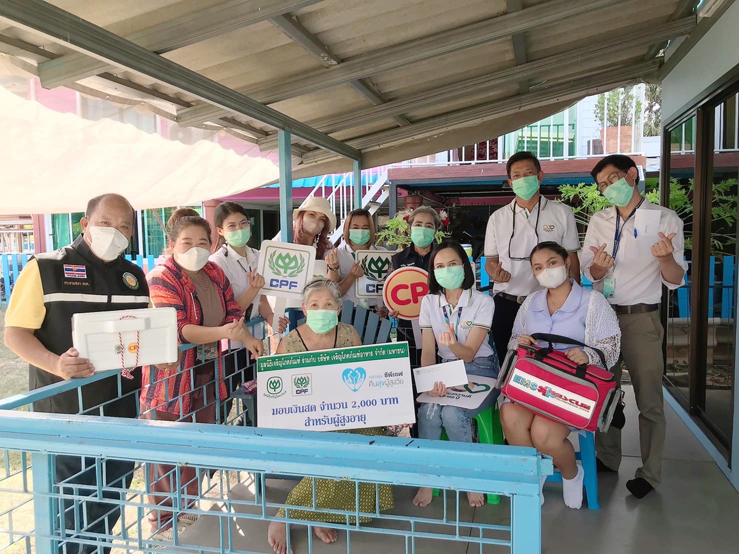 คุณชาญณรงค์ ส้มแก้ว ผู้จัดการสำนักธุรการ ภาคกลาง 1, คุณกมลพรรณ สุขถาวร ผู้จัดการสำนักความปลอดภัย และคณะกรรมการชุมชนสัมพันธ์ CPF โรงงานแปรรูปเนื้อไก่สระบุรี ร้อยเรียงใจเดินหน้าโครงการ “ซีพีเอฟ คืนสุข ผู้สูงวัย” พร้อมด้วยพยาบาลเพื่อตรวจสุขภาพในเบื้องต้น และมอบเงินช่วยเหลือให้แก่ผู้สูงวัย รวม 6 ท่าน ในพื้นที่ ต.ตาลเดี่ยว และ ต.บ้านป่า จ.สระบุรี เพื่อบรรเทาความเดือดร้อนและใช้ดำรงชีพ โดยมี คุณวิชาญ โยธานารถ ประธานสภาองค์การบริหารส่วนตำบลตาลเดี่ยว, คุณวาสนา โสดานิล ผู้อำนวยการกองสวัสดิการสังคม องค์การบริหารส่วนตำบลตาลเดี่ยว ร่วมด้วย
