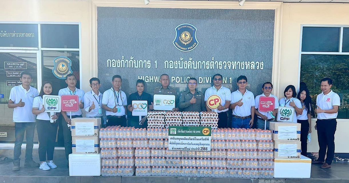 คุณณฐาภพ หัตถโกศล ผู้ช่วยกรรมการผู้จัดการ CPF สำนักธุรการภาคกลาง 1-2, ภาคเหนือ พร้อมด้วยผู้บริหาร CPF สระบุรี เป็นตัวแทนบริษัทฯ มอบผลิตภัณฑ์จาก CPF ได้แก่ ไก่ปรุงสุกพร้อมทาน 100 กิโลกรัม, ไก่สดปลอดสาร 100 กิโลกรัม, เนื้อหมู 100 กิโลกรัม, ไส้กรอก 100 กิโลกรัม, ไข่ไก่ 3,000 ฟอง และน้ำดื่มซีพี 5,500 ขวด สนับสนุนการปฏิบัติงานของเจ้าหน้าที่ในพื้นที่ จ.สระบุรี ประกอบด้วย แขวงทางหลวงสระบุรี หมวดทางหลวงหินกอง กองกำกับการ 1 และกองบังคับการตำรวจทางหลวง ณ จุดบริการประชาชน เพื่ออำนวยความสะดวกด้านการเดินทางแก่ประชาชนในช่วงเทศกาลวันปีใหม่ 2566