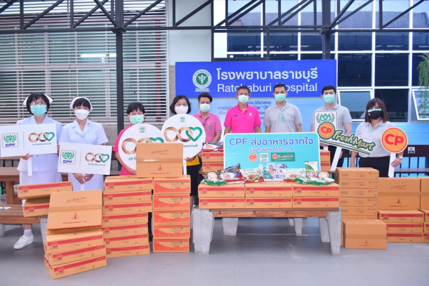 นพ.นิคม มะลิทอง รองผู้อำนวยการฝ่ายการแพทย์ รพ.ราชบุรี รับมอบอาหารสำเร็จรูปพร้อมทาน ในโครงการ “CPF ส่งอาหารจากใจ ร่วมต้านภัยโควิด-19” เพื่อสร้างแรงกายและเสริมพลังใจในการปฎิบัติหน้าที่และลดภาระการจัดเตรียมอาหารแก่บุคลากรทางการแพทย์ จาก คุณวิชานนท์ บุญประเสริฐ และพนักงาน CPF โรงงานอาหารสัตว์ราชบุรี เป็นผู้แทนบริษัทฯ มอบ