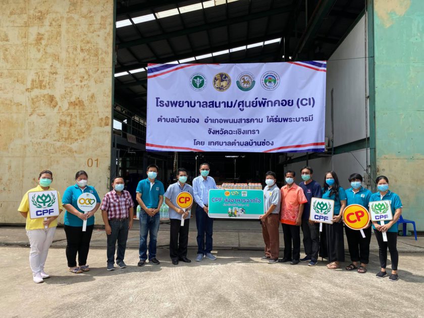 คุณธีระพงษ์ สมบัติหลาย ผู้ช่วยกรรมการผู้จัดการ ธุรกิจสุกร และชาว CPF CPF ธุรกิจสุกร ภาคตะวันออก เป็นตัวแทนบริษัทฯ มอบน้ำดื่มซีพี 2,500 ขวด จาก CPF ในโครงการ “CPF ส่งอาหารจากใจ ร่วมต้านภัยโควิด-19” ตามนโยบายเครือซีพี สนับสนุนโรงพยาบาลสนาม และ ศูนย์พักคอย ต.บ้านซ่อง อ.พนมสารคาม จ.ฉะเชิงเทรา เพื่อนำไปแจกจ่ายให้แก่ผู้ป่วยโควิด โดยมี คุณสมศักดิ์ ภู่พนมภูมิ นายกเทศมนตรีเทศบาลตำบลบ้านซ่อง และคุณเอกชัย อรุณฉลาด ผอ.รพ.สต.หนองหว้า รับมอบ