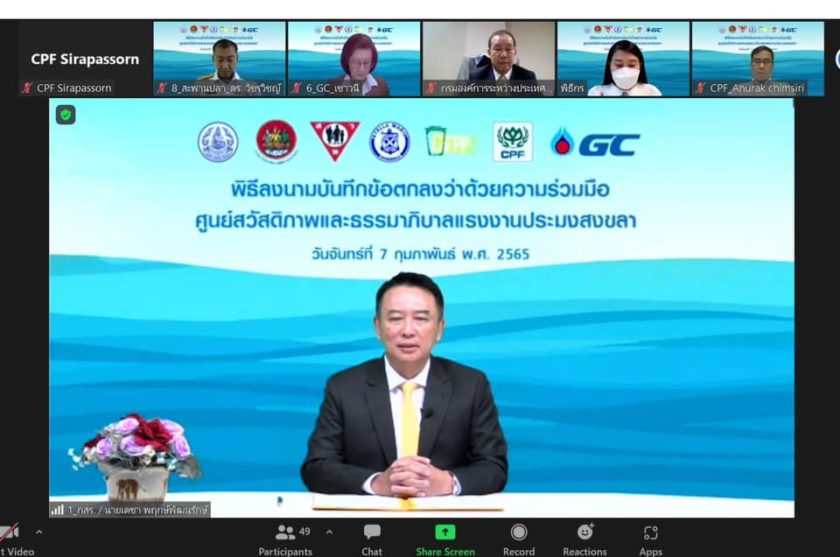 สำหรับการลงนามในครั้งนี้ จัดขึ้นในรูปแบบออนไลน์ ซึ่งได้รับเกียรติ จาก ก.การต่างประเทศ ได้แก่ คุณใจไทย อุปการนิติเกษตร รองอธิบดี กรมอเมริกาและแปซิฟิกใต้ คุณกัลย์ธีรา คุ้มไพโรจน์ นักการทูตชำนาญการ กรมองค์การระหว่างประเทศ รวมทั้ง ดร.เสรี นนทสูติ กรรมการสหประชาชาติว่าด้วยสิทธิทางเศรษฐกิจ สังคม และวัฒนธรรม คุณสุรียพรรณ์ ณ สงขลา รองผู้ว่าฯ สงขลา เรือโทนพดล จันทรมณี ประมงจังหวัดสงขลา (อำนวยการสูง) และคุณธันยพร กริชติทายาวุธ ผู้อำนวยการ สมาคมเครือข่ายโกลบอลคอมแพ็กแห่งประเทศไทย