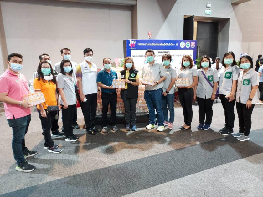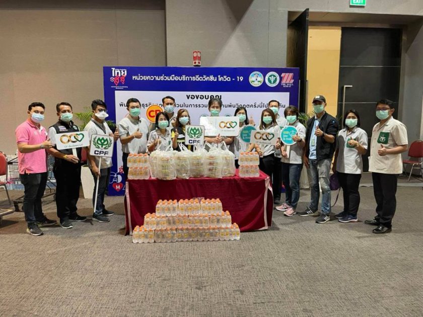 คุณวรวิทย์ เลิศวิเศษ ผู้จัดการทั่วไป และพนักงาน CPF โรงงานอาหารสัตว์โคกกรวด จ.นครราชสีมา เป็นผู้แทนบริษัทฯ มอบอาหารและน้ำดื่มซีพี ในโครงการ “CPF ส่งอาหารจากใจ ร่วมต้านภัยโควิด-19” ตามนโยบายของเครือซีพี สนับสนุนการปฏิบัติงานของทีมแพทย์ พยาบาล และเจ้าหน้าที่ที่ฉีดวัคซีนป้องกันโควิดให้ประชาชน ร่วมสร้างภูมิคุ้มกันหมู่ให้ประเทศ ณ เดอะมอลล์โคราช โดยมี คุณฉวีวรรณ จันณรงค์ รองนายแพทย์สาธารณสุขจังหวัดนครราชสีมา รับมอบ