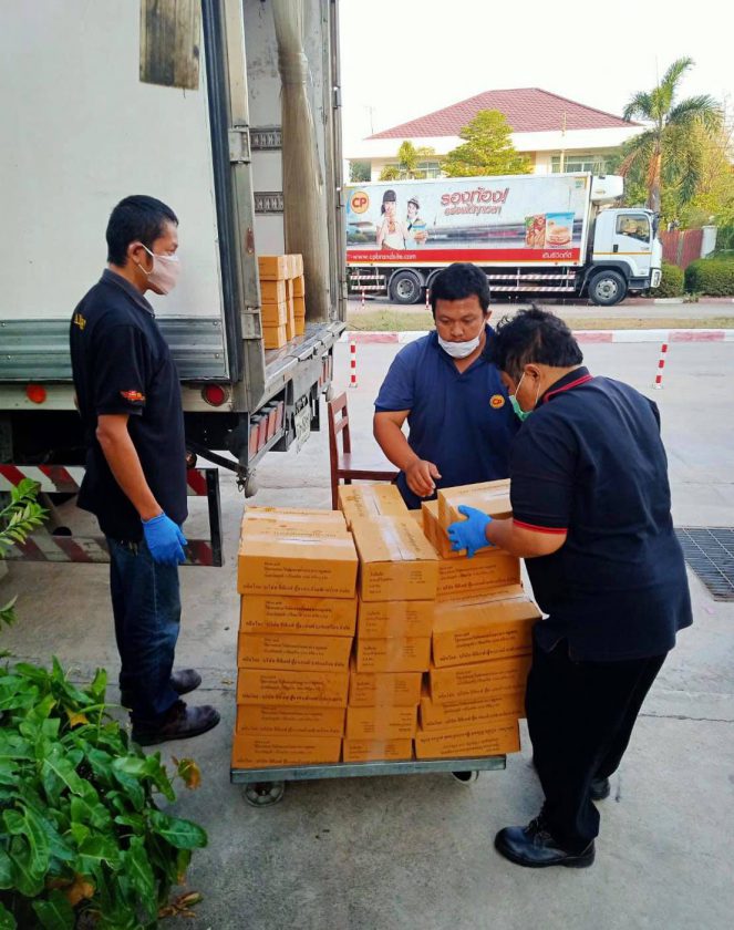CPF ดำเนิน “โครงการ CPF ส่งอาหารจากใจ ร่วมต้านภัยโควิด-19” ตั้งแต่เดือนมีนาคม 2563 ซึ่งริเริ่มโดย CEO คุณประสิทธิ์ บุญดวงประเสริฐ โดยร่วมกับภาครัฐและภาคประชาสังคม เพื่อช่วยสร้างความมั่นคงทางอาหารให้คนไทยในภาวะวิกฤต ด้วยการส่งมอบอาหารปลอดภัย เป็นกองเสบียงให้บุคลากรทางการแพทย์ที่ปฏิบัติงานหน่วยโควิด-19 ในโรงพยาบาลรัฐกว่า 200 แห่งทั่วประเทศ และต่อยอดไปสู่การดูแลครอบครัวหมอ-พยาบาลทั่วประเทศ อีก 20,000 ครอบครัว รวมถึงจัดส่งผลิตภัณฑ์อาหารพร้อมทานให้กับโรงพยาบาลที่อยู่ในพื้นที่ห่างไกล 5 แห่งใน จ.ตาก เพื่อเป็นกำลังสำคัญในการสกัดกั้นโรคระบาดจากพื้นที่ชายแดนไทย-เมียนมา เคียงข้างคนไทยให้ผ่านพ้นวิกฤตนี้ไปด้วยกัน
