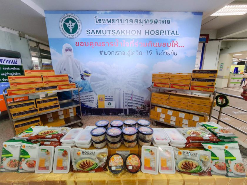 ตลอดช่วงเดือนมกราคม 2564 นี้ บริษัทฯ โดยทีมเดลิเวอรี่ของ CP FreshMart ได้ทยอยส่งอาหารพร้อมทาน รวมทั้งสิ้น 61,200 แพ็ค ตามมาตรการความปลอดภัยอย่างรัดกุมไปถึงโรงพยาบาลที่ดูแลผู้ป่วยโควิด-19 ทั้ง 15 แห่ง ได้แก่ โรงพยาบาลสมุทรสาคร, โรงพยาบาลกระทุ่มแบน, โรงพยาบาลนครปฐม, โรงพยาบาลบางเลน, โรงพยาบาลราชบุรี, โรงพยาบาลดำเนินสะดวก, โรงพยาบาลบ้านโป่ง, โรงพยาบาลบ้านแพ้ว, โรงพยาบาลสมเด็จพระพุทธเลิศหล้า, โรงพยาบาลนภาลัย, โรงพยาบาลพระจอมเกล้า, โรงพยาบาลมะการักษ์, โรงพยาบาลพหลพลพยุหาเสนา, โรงพยาบาลพระยายมราช และโรงพยาบาลสมเด็จพระสังฆราชองค์ที่ 17