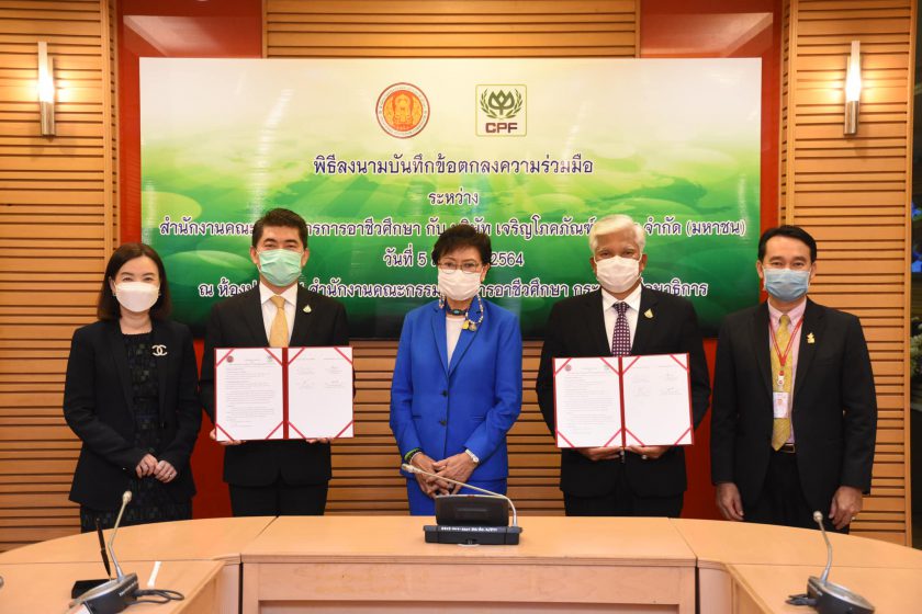 ดร.คุณหญิงกัลยา โสภณพนิช รักษาราชการแทน รมว.ศึกษาธิการ เป็นประธานพิธีลงนามบันทึกข้อตกลงเพื่อร่วมมือในการผลิตและพัฒนานักเรียน นักศึกษาอาชีวศึกษาด้านอาหารและเกษตรกรรมสู่การเป็นผู้ประกอบการมืออาชีพ ในโครงการ “CPF Jump Start ก้าวแรกอย่างมืออาชีพ” ระหว่าง สำนักงานคณะกรรมการการอาชีวศึกษา โดย ดร.สุเทพ แก่งสันเทียะ เลขาธิการคณะกรรมการการอาชีวศึกษา กับ CPF โดย CEO คุณประสิทธิ์ บุญดวงประเสริฐ และมี คุณสง่า แต่เชื้อสาย ผู้อำนวยการสำนักความร่วมมือ สอศ. พร้อมด้วย คุณพิมลรัตน์ รีพัฒนาวิจิตรกุล รองกรรมการผู้จัดการบริหาร ด้านทรัพยากรบุคคล CPF ร่วมด้วย ณ ห้องประชุม 1 สำนักงานคณะกรรมการการอาชีวศึกษา