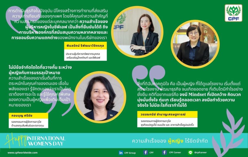 📲 ขอชวนทุกท่าน… ติดตามโอกาสและบทบาทของผู้บริหารหญิง CPF 🗓 ตั้งแต่วันนี้ – 11 มี.ค. 65 ได้ที่ Facebook : CPF >> https://www.facebook.com/147486028615956/posts/5359791467385360/?d=n