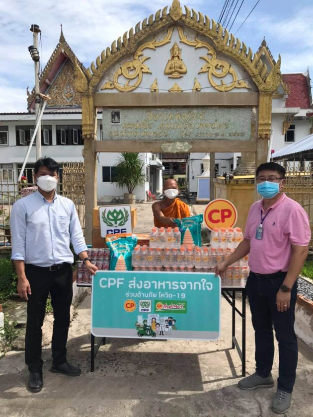 ขณะที่ คุณชูรพันธ์ ภิญโญ ผู้จัดการทั่วไป และชาว CPF ศูนย์ตัดแต่งและกระจายสินค้าแปดริ้ว นำผลิตภัณฑ์อาหารจาก CPF ได้แก่ หมูบด 10 กิโลกรัม, ไข่ไก่ซีพี 150 ฟอง, ข้าวสาร 10 กิโลกรัม, น้ำดื่มซีพี 120 ขวด และบะหมีกึ่งสำเร็จรูป 5 ลัง ถวายแด่ผู้แทนพระครูฉันท์พิทักษ์ (เจ้าอาวาส) วัดชนะสงสารพิทธาะร จ.ฉะเชิงเทรา เพื่อช่วยเหลือพระภิกษุสงฆ์ ฝ่าวิกฤตโควิด-19