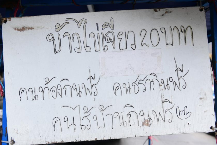 “ทุกวันผมจะขี่รถไปเรื่อยๆ ทั่วกรุงเทพฯ แบบไม่มีจุดหมาย แม้จะฟ้าฝนจะไม่เป็นใจ แต่เป้าหมายของผม คือ “ถ้าข้าวไม่หมด ไม่กลับบ้าน” เพราะข้าว 1 กล่อง มีค่ามากสำหรับคนริมทาง บางคนขี่ซาเล้งหาของเก่าไม่มีเงินติดตัวแม้แต่บาทเดียว ผมยินดีแบ่งปันให้เค้ากินอิ่ม จึงติดป้ายบนรถว่า คนท้อง คนชรา และคนไร้บ้าน ได้กินฟรี เพื่อให้คนเหล่านี้อิ่มท้อง มีแรงสู้ในวันต่อๆ ไป”