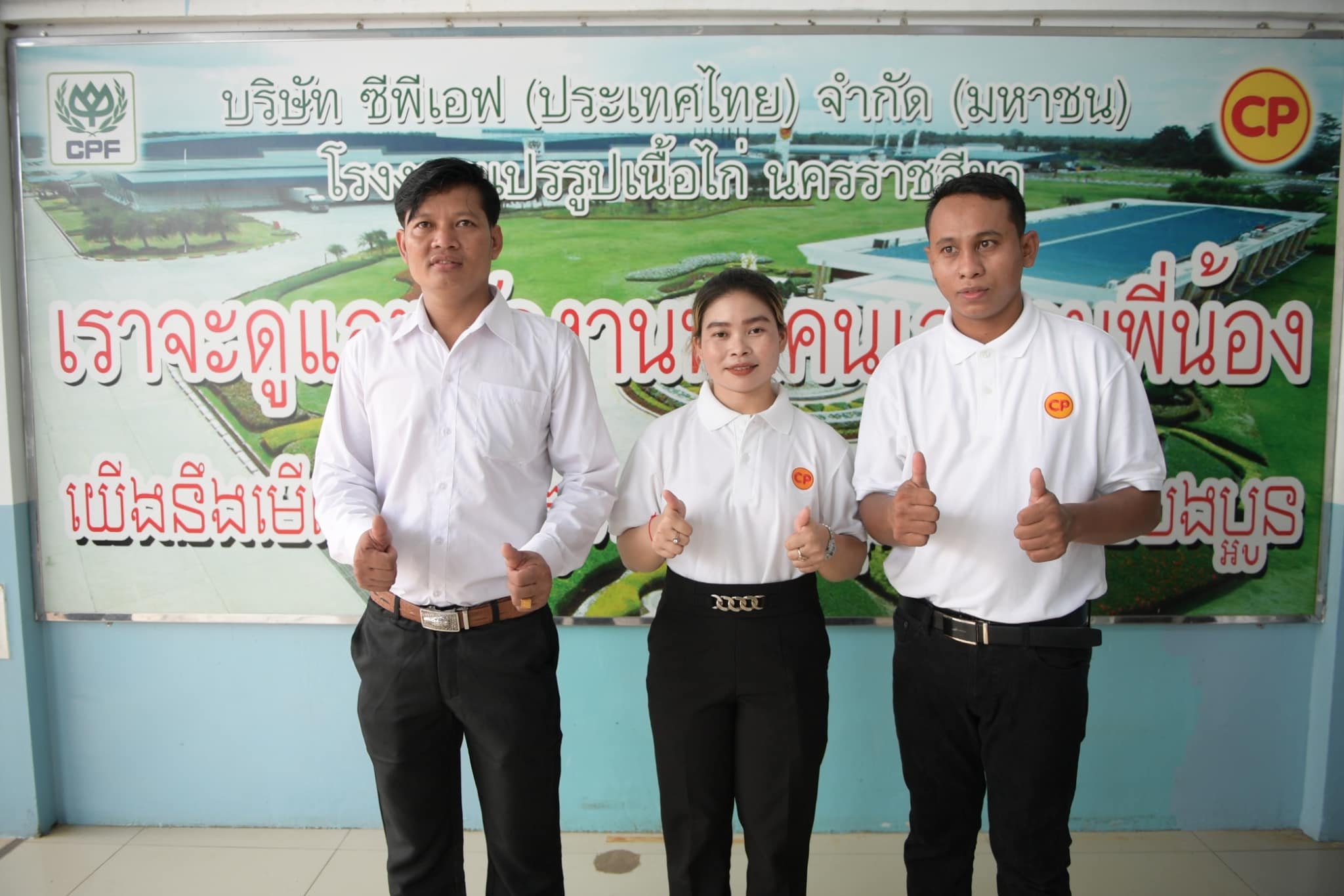 โรงงานแปรรูปเนื้อไก่นครราชสีมา มีการจัดจ้างและให้สวัสดิการแก่แรงงานกัมพูชาอย่างเท่าเทียม พร้อมจัดหอพักและรถรับส่ง การจ้างล่ามไว้คอยสื่อสารและให้ความช่วยเหลือกับแรงงานทั้งในเรื่องการทำงานและชีวิตความเป็นอยู่ บริษัทฯ ร่วมกับมูลนิธิเครือข่ายส่งเสริมคุณภาพชีวิตแรงงาน หรือ มูลนิธิ LPN จัดทำช่องทางรับฟังเสียงพนักงานฮอทไลน์ Labour Voice by LPN ซึ่งเป็นองค์กรกรกลางที่พนักงานชาวกัมพูชาของ CPF สามารถพูดคุยขอคำปรึกษาและร้องเรียนด้วยภาษากัมพูชา และจัดอบรมเรื่องสิทธิมนุษยชนให้พนักงานได้มีความรู้และเข้าใจสิทธิแรงงาน ความปลอดภัยในการทำงานช่วยส่งเสริมบรรยากาศการทำงานที่มีความเข้าใจซึ่งกันและกัน ยอมรับในความแตกต่าง ทั้งนี้ ในสถานการณ์โควิด-19 รวม 3 ปี CPF ได้ยกระดับมาตรการป้องกันการแพร่ระบาดอย่างเคร่งครัดเพื่อให้พนักงานทุกคนมั่นใจว่าทำงานด้วยความปลอดภัยในทุกสถานการณ์ และทุ่มเททุกสรรพกำลังดูแลและช่วยเหลือให้พนักงานทุกคน รวมทั้งชาวกัมพูชาผ่านพ้นวิกฤตไปด้วยกัน