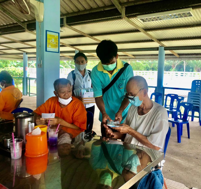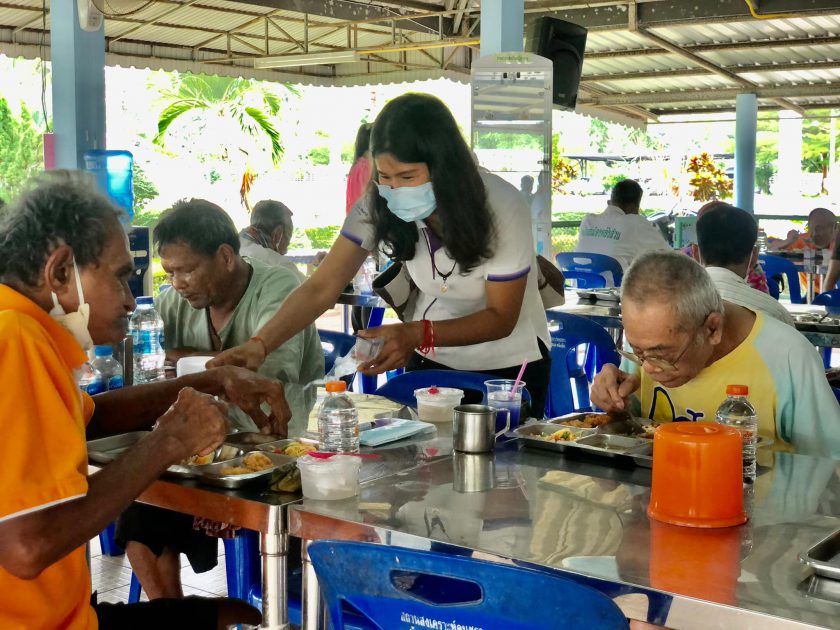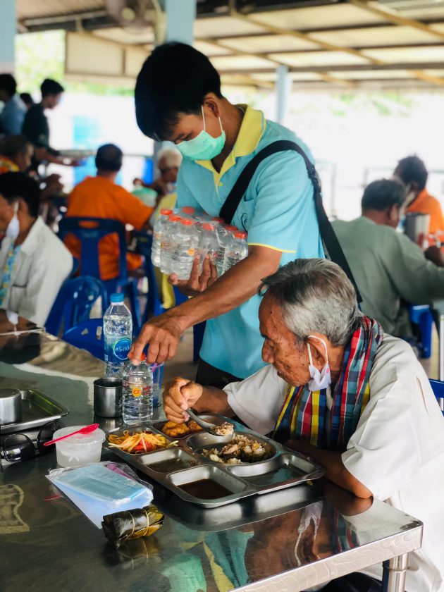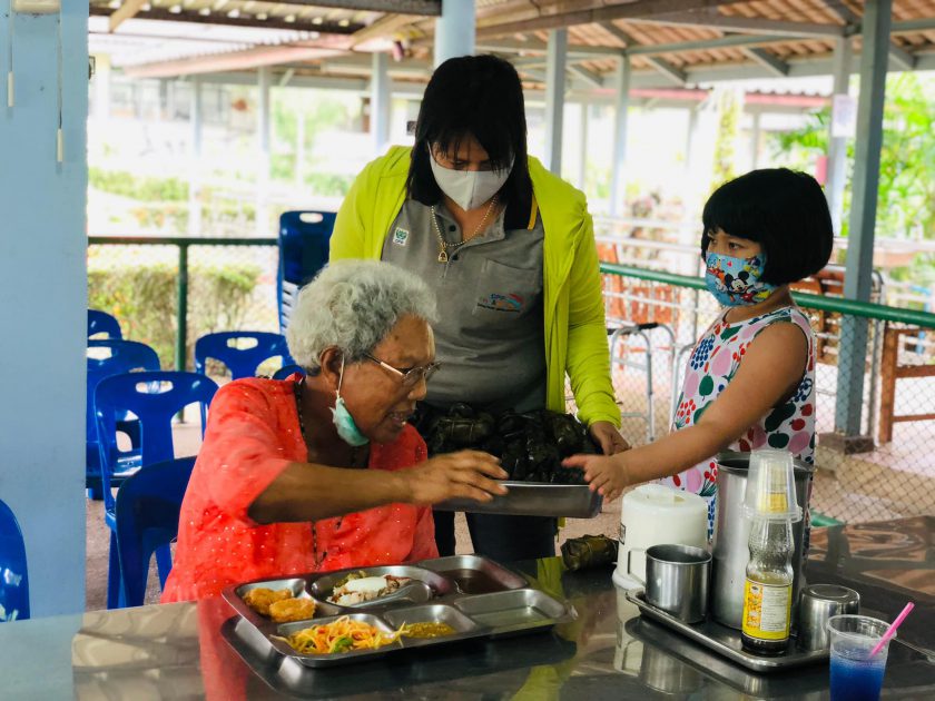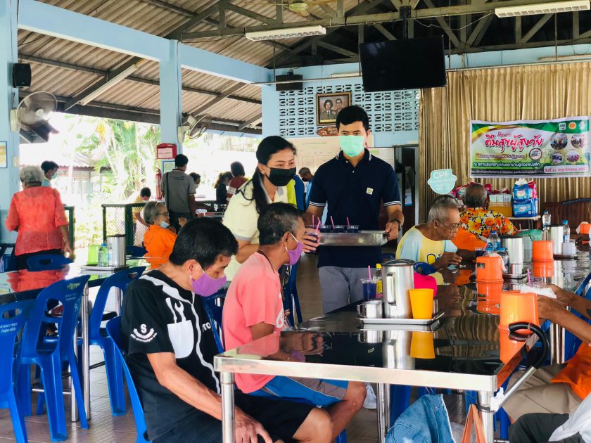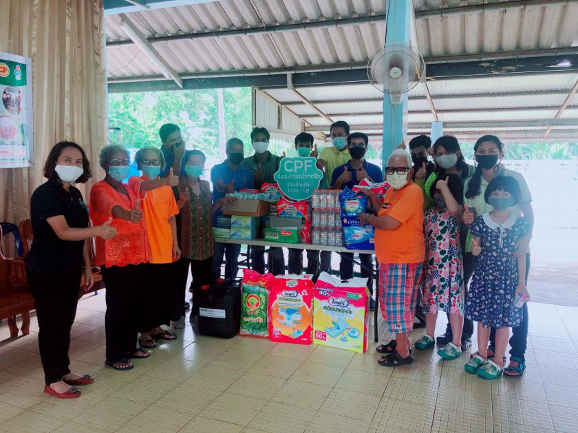 คุณอาลัยลา ภักดี ผู้จัดการทั่วไป พร้อมด้วยพนักงาน CPF ศูนย์ปรับปรุงพันธุกรรมกุ้ง ปะทิว ส่งมอบความสุขให้กับผู้สูงอายุ ด้วยการเลี้ยงอาหารกลางวันและมอบสิ่งของเครื่องอุปโภค-บริโภค ในโครงการ ซีพีเอฟ คืนสุขผู้สูงวัย ณ สถานสงเคราะห์คนชราบ้านอู่ทอง-พนังตัก อ.เมือง จ.ชุมพร