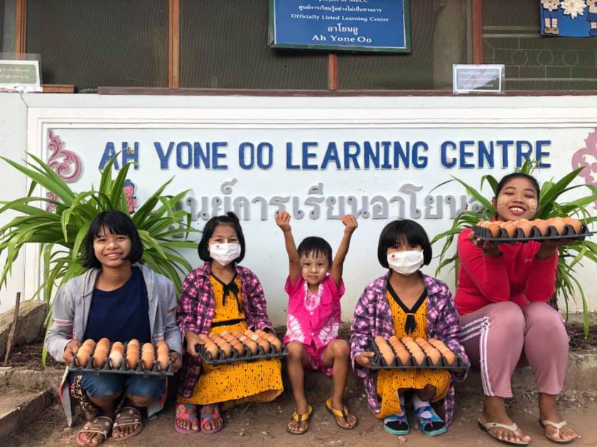 โครงการเลี้ยงไก่ไข่ฯ ในศูนย์การเรียนรู้อา โยน อู ตั้งอยู่ที่หมู่ 10 ต.แม่ปะ อ.แม่สอด จ.ตาก ติดกับชายแดนเมียวดี เมียนมา ศูนย์การเรียนรู้แห่งนี้ ก่อตั้งเมื่อเดือนพฤษภาคม ปี 2548 จนถึงปัจจุบันเข้าสู่ปีที่ 16 แล้ว ศูนย์การเรียนรู้ของเด็กต่างด้าว มีนักเรียน 110 คน ครู 7 คน ทั้งหมดเป็นสัญชาติเมียนมา เปิดการเรียนการสอนตั้งแต่ศูนย์เด็กเล็กจนถึงชั้น ป.7 (Grade 1-7) ใช้หลักสูตรของเมียนมาในการเรียนการสอน มีวิชาภาษาไทยเข้าไปเสริมและหลักสูตรการศึกษานอกระบบ (กศน.) โดยมีนักเรียนที่ศึกษาในระบบ กศน. 7 คน