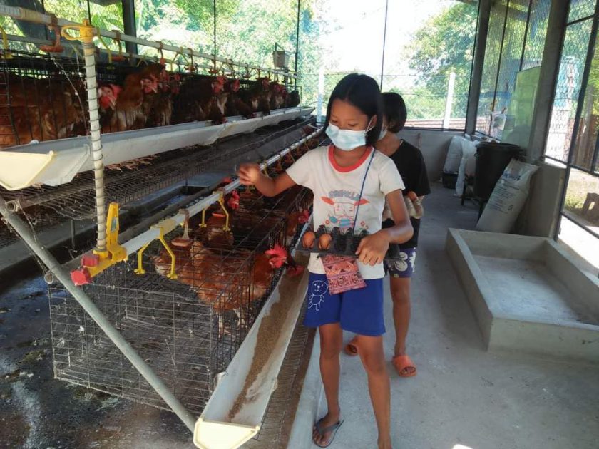 ในภาวะโควิด-19 ระบาด โครงการเลี้ยงไก่ไข่ฯ มีประโยชน์อย่างมากทั้งต่อเด็กๆ และชุมชนรอบข้าง โดยศูนย์ฯ นำผลผลิตไข่ไก่ ข้าวสาร และน้ำมัน แจกจ่ายให้นักเรียนและชาวบ้านที่ได้รับความเดือดร้อนช่วงโควิด และถึงแม้ว่าผลกระทบจากการระบาดของโควิด จะทำให้ศูนย์ฯ ต้องหยุดการเรียนการสอนไว้ชั่วคราว แต่คุณครูก็ยังไปสอนหนังสือให้นักเรียนตามบ้าน นำไข่ไก่ไปให้นักเรียนได้บริโภคด้วย
