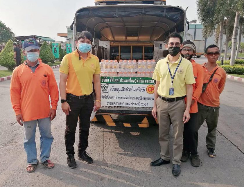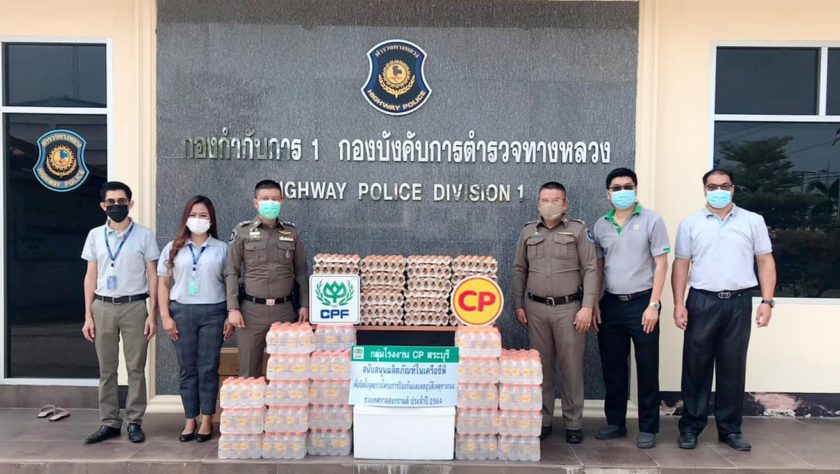 คุณณฐาภพ หัตถโกศล ผู้ช่วยกรรมการผู้จัดการ สำนักธุรการ นำพนักงาน CPF โรงงานแปรรูปเนื้อไก่ , โรงงานอาหารสำเร็จรูป แก่งคอย อ.แก่งคอย จ.สระบุรี และโรงงานแปรรูปไข่ บ้านนา จ.นครนายก เป็นตัวแทนบริษัทฯ ร่วมมอบผลิตภัณฑ์อาหารคุณภาพจาก CPF อาทิ ไก่ปรุงสุก ไส้กรอก ไข่ไก่สด 2,000 ฟอง และน้ำดื่มซีพี 5,000 ขวด สนับสนุนการปฏิบัติงานของเจ้าหน้าที่หน่วยงานราชการต่างๆ ในพื้นที่ จ.สระบุรี เช่น กองกำกับการ 1 กองบังคับการตำรวจทางหลวง จ.สระบุรี, แขวงทางหลวงสระบุรี, หมวดทางหลวงหินกอง, และ อบต.ตาลเดี่ยว เป็นต้น เพื่อในการอำนวยความสะดวกด้านการจราจรและความปลอดภัยของประชาชนในช่วงเทศกาลวันสงกรานต์ โดยมี พ.ต.ท.สหธัญ กำบิลดีลิราช รอง ผกก.บก.รฟ.บชก. ปฏิบัติหน้าที่ รอง ผกก. บก.ทล.บช.ก., คุณอาคม เกษรินทร์ เจ้าหน้าที่โยธา หมวดทางหลวงหินกอง, คุณทะวาย กวางทอง รองนายก อบต.ตาลเดี่ยว รับมอบ