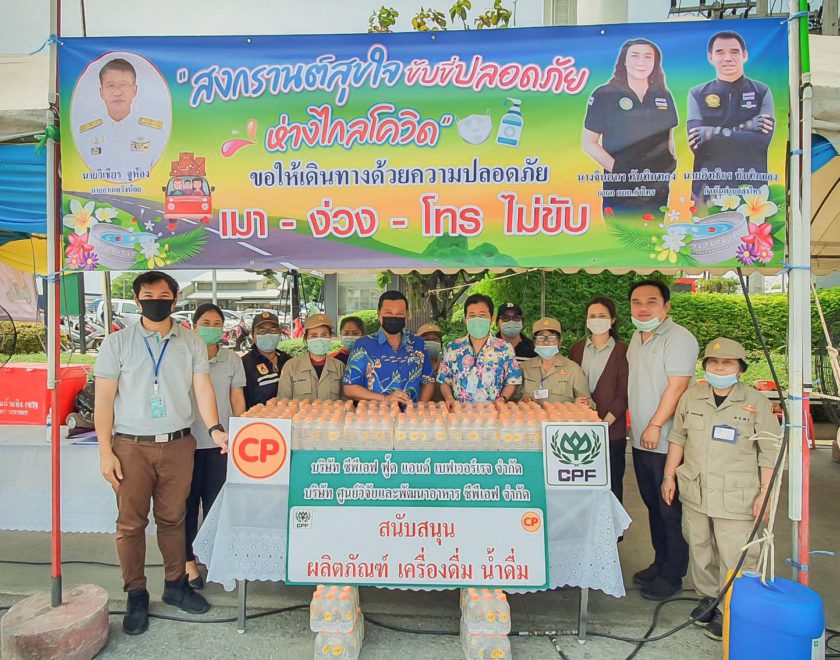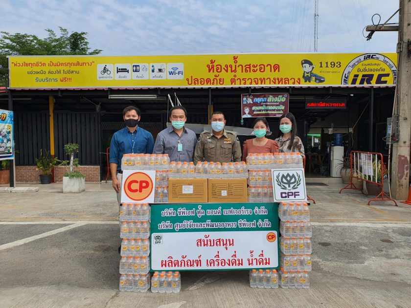 คุณจิรัญดร จักษุศรี รองกรรมการผู้จัดการ พร้อมด้วยพนักงาน CPF RD Center และโรงงานอาหารสำเร็จรูปวังน้อย เป็นตัวแทนบริษัทฯ มอบผลิตภัณฑ์อาหารคุณภาพ CPF ได้แก่ เนื้อไก่หมักพร้อมปรุง, ขนมจีบ ซาลาเปา และน้ำดื่ม CP เพื่อสนับสนุนการปฏิบัติหน้าที่ของเจ้าหน้าที่ อบต.ลำไทร ตำรวจ และอาสาสมัคร ณ จุดบริการประชาชน หน้าปั๊มน้ำมัน ปตท. กม.58 (ฝั่งขาเข้า จ.สระบุรี) ถ.พหลโยธิน และศูนย์บริการประชาชน กม.ที่ 73-74 ถ.พหลโยธิน (ฝั่งขาเข้า จ.สระบุรี) เพื่ออำนวยความสะดวกด้านการจราจรและความปลอดภัยของประชาชนที่สัญจรช่วงเทศกาลสงกรานต์ โดยมี คุณทรงศักดิ์ ฤกษ์เกษม ปลัดองค์การบริหารส่วนตำบลลำไทร และ ร.ต.ต.ปรวัฒน์ กนกทอง รองสารวัตรป้องกันปราบปราม สถานีตำรวจทางหลวง 1 กองกำกับการ 1 รับมอบ