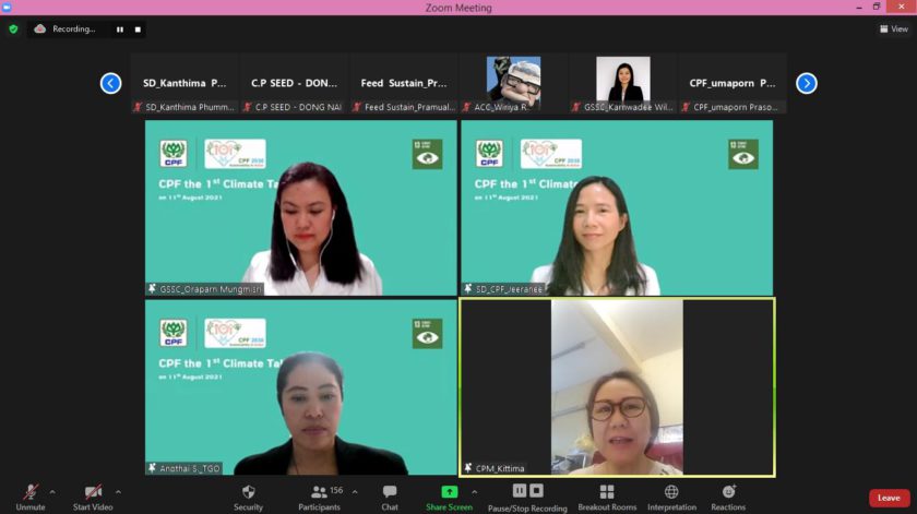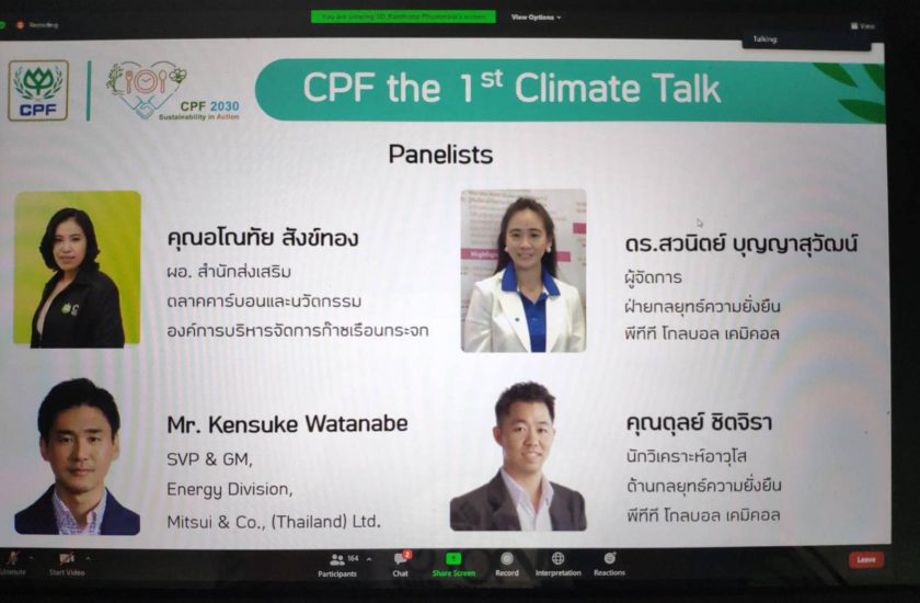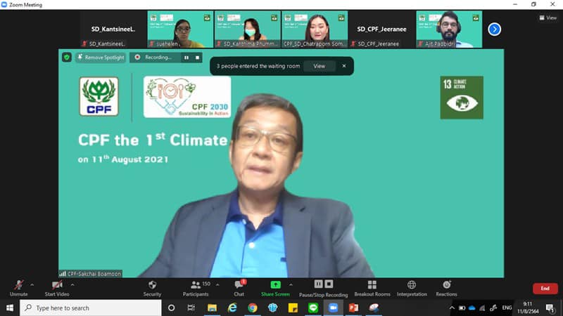 CPF จัดสัมมนา “CPF 1st Climate Talk” ผ่านระบบออนไลน์ ระดมสมองผู้เชี่ยวชาญด้านการกำหนดแผนและแนวทางลดการเปลี่ยนแปลงสภาพภูมิอากาศจากบริษัทชั้นนำของไทยและต่างประเทศ เสริมความรู้พนักงานและผู้บริหารในการกำหนดกลยุทธ์ธุรกิจและแผนปฏิบัติการ (Climate Action Plan) สู่เป้าหมาย “องค์กรคาร์บอนต่ำ” (Low-carbon Organization) ในปี 2030