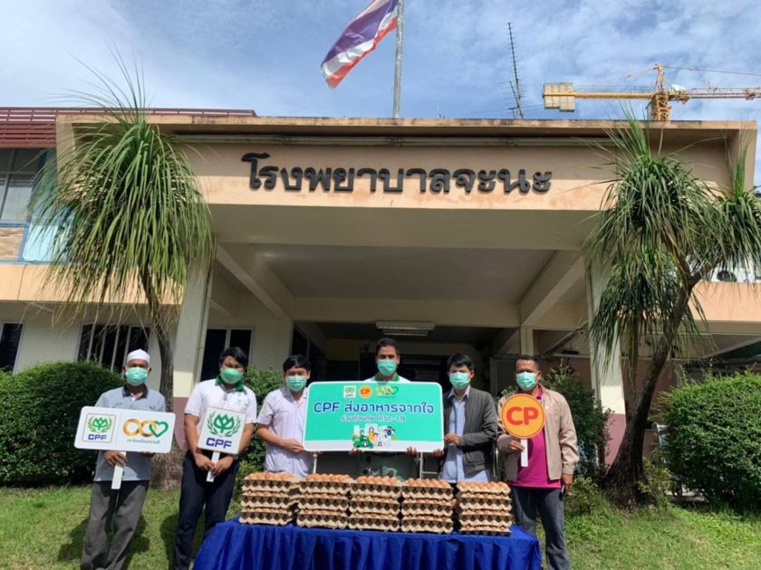 นพ.สุภัทร ฮาสุวรรณกิจ ผู้อำนวนการโรงพยาบาลจะนะ จ.สงขลา รับมอบไข่ไก่สด ปลอดสาร ปลอดภัย 2,010 ฟอง จาก CPF ในโครงการ “CPF ส่งอาหารจากใจ ร่วมต้านภัยโควิด-19” ตามนโยบายเครือซีพี เพื่อนำไปปรุงเป็นอาหารพร้อมทานแจกจ่ายให้กับชาวชุมชน ในพื้นที่ อ.จะนะ จ.สงขลา บรรเทาความเดือดร้อนจากสถานการณ์โควิด โดยมี คุณวีระยุทธ คงสมุทร ผู้จัดการฝ่ายผลิตฟาร์มไก่ไข่จะนะ COMPLEX และ คุณกษิดิศ หลำแซ่อิ่ม นำชาว CPF จิตอาสา ธุรกิจไก่ไข่ภาคใต้ เป็นผู้แทนบริษัทฯ ร่วมมอบ