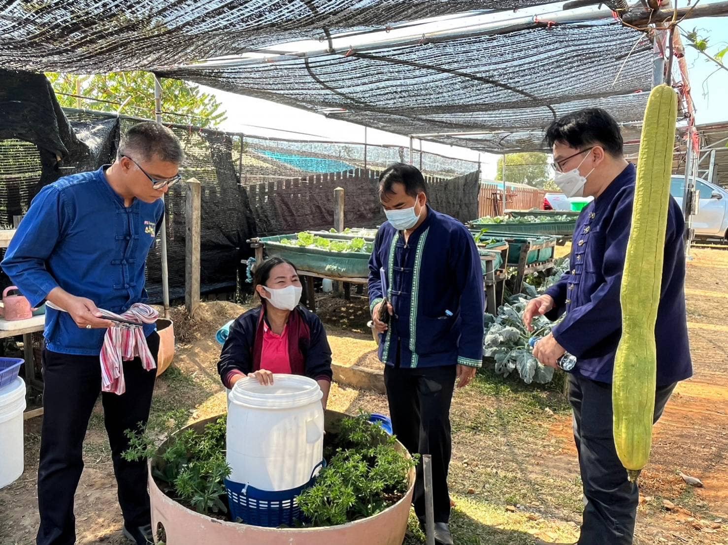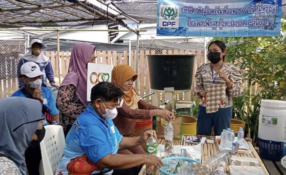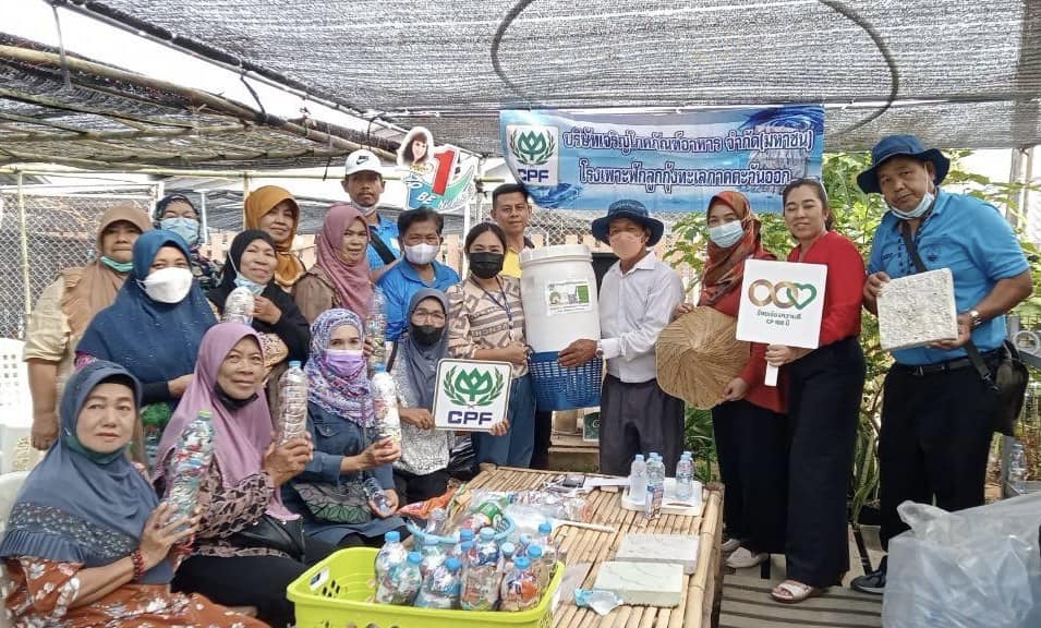 คุณชำนาญวิทย์ เตรัตน์ ผู้ว่าราชการจังหวัดตราด เยี่ยมชมแปลงผัก “โครงการแรงงานพันธุ์ดี ตามวิถีเศรษฐกิจพอเพียง” ของ CPF โรงเพาะฟักลูกกุ้ง จ.ตราด ที่ส่งเสริมให้พนักงานน้อมนำหลักปรัชญาเศรษฐกิจพอเพียงมาใช้เป็นแนวทางในการดำเนินชีวิต ด้วยการใช้พื้นที่ในสถานประกอบการทำการเกษตร ทั้งการทำปุ๋ย ปลูกผักสวนครัวปลอดสารไว้รับประทานเพื่อสุขภาพที่ดี รวมทั้งการทำถังหมักรักษ์ดินเพื่อลดเศษอาหาร การทำ Eco-Bricks ภายใต้โครงการ Waste to Value เพื่อลดขยะทั่วไป ลดค่าใช้จ่ายในการกำจัดขยะ และทดแทนอิฐในการทำสิ่งสร้าง โดยมี คุณนิยม มูลสุวรรณ ผู้ช่วยกรรมการผู้จัดการ และพนักงาน CPF โรงเพาะฟักลูกกุ้ง จ.ตราด ร่วมให้การต้อนรับ